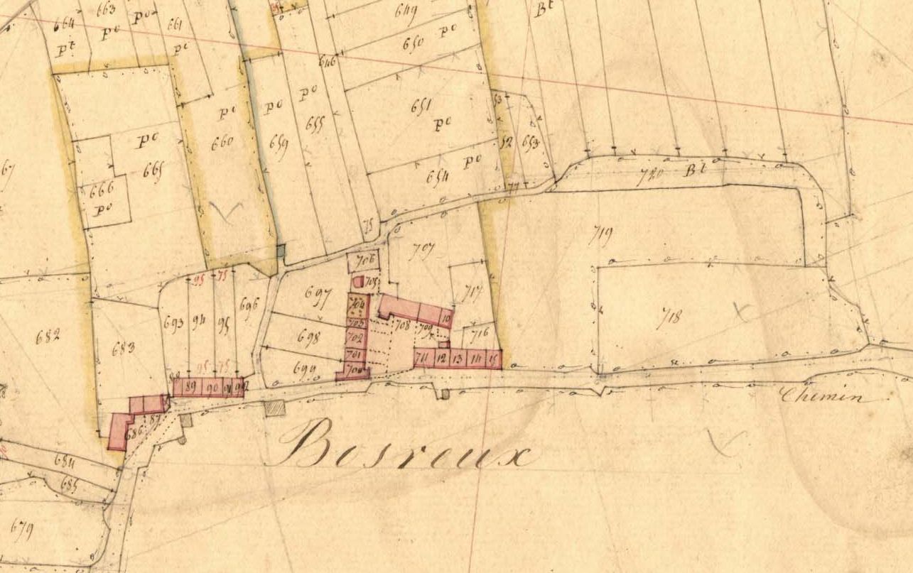 Extrait du cadastre de 1843, section A4, Bosreux nordImmatriculation