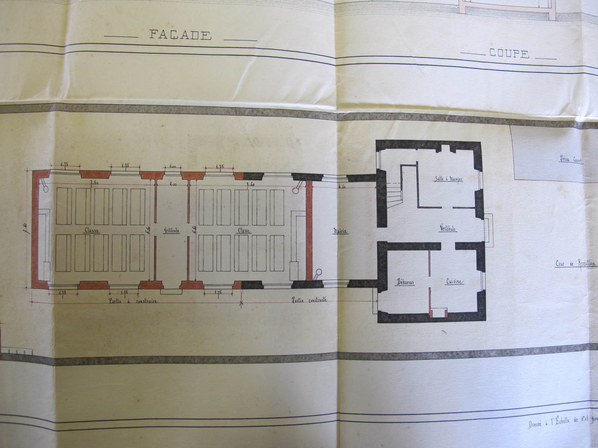 Projet d'appropriation de l'école de garçons, plan au sol, 1925, V. Prioul, architecteImmatriculation