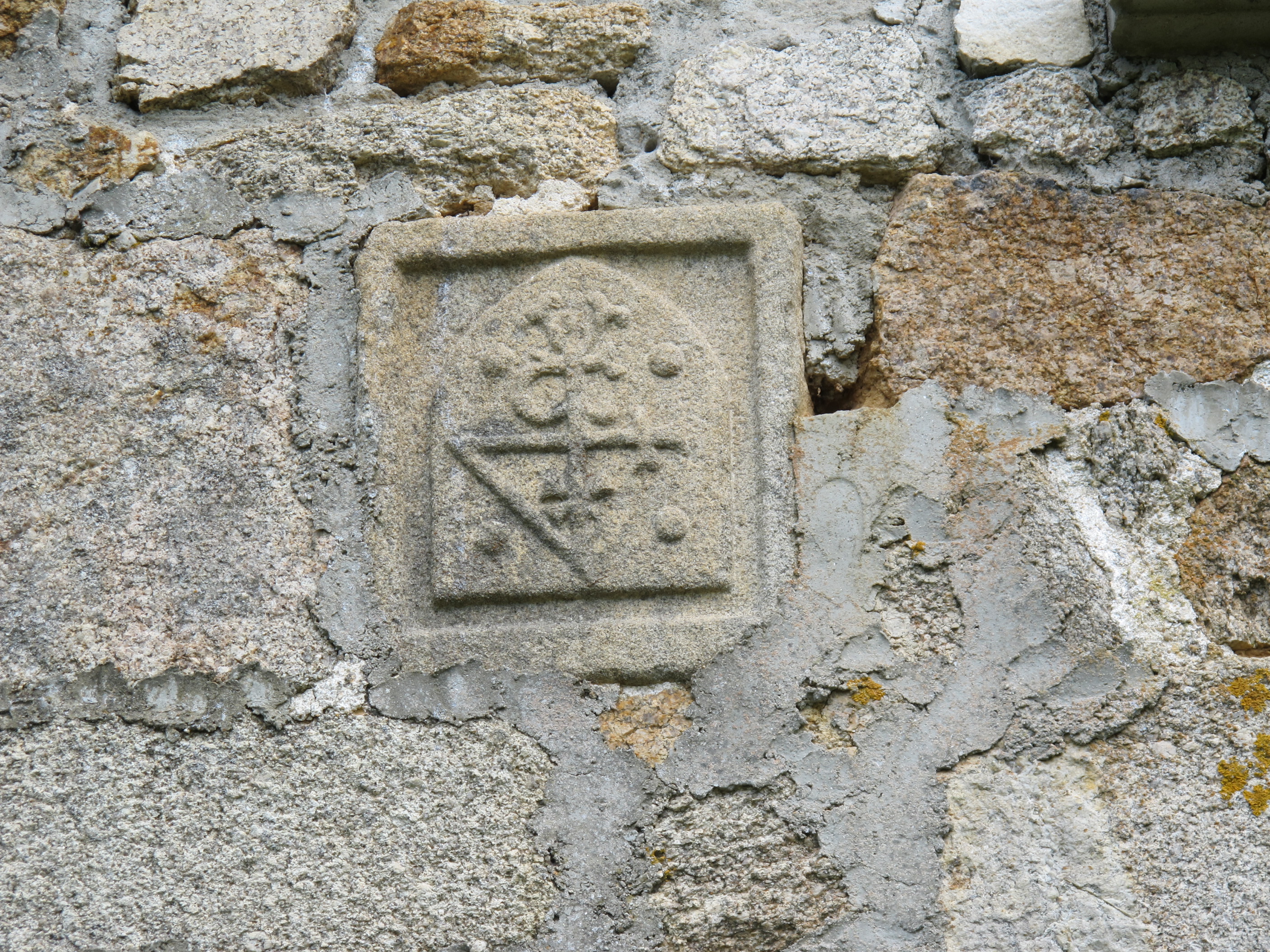 Détail de la marque de marchand : un 4 de chiffre et des initiales, 17e siècle (1843 parcelle 385)Immatriculation