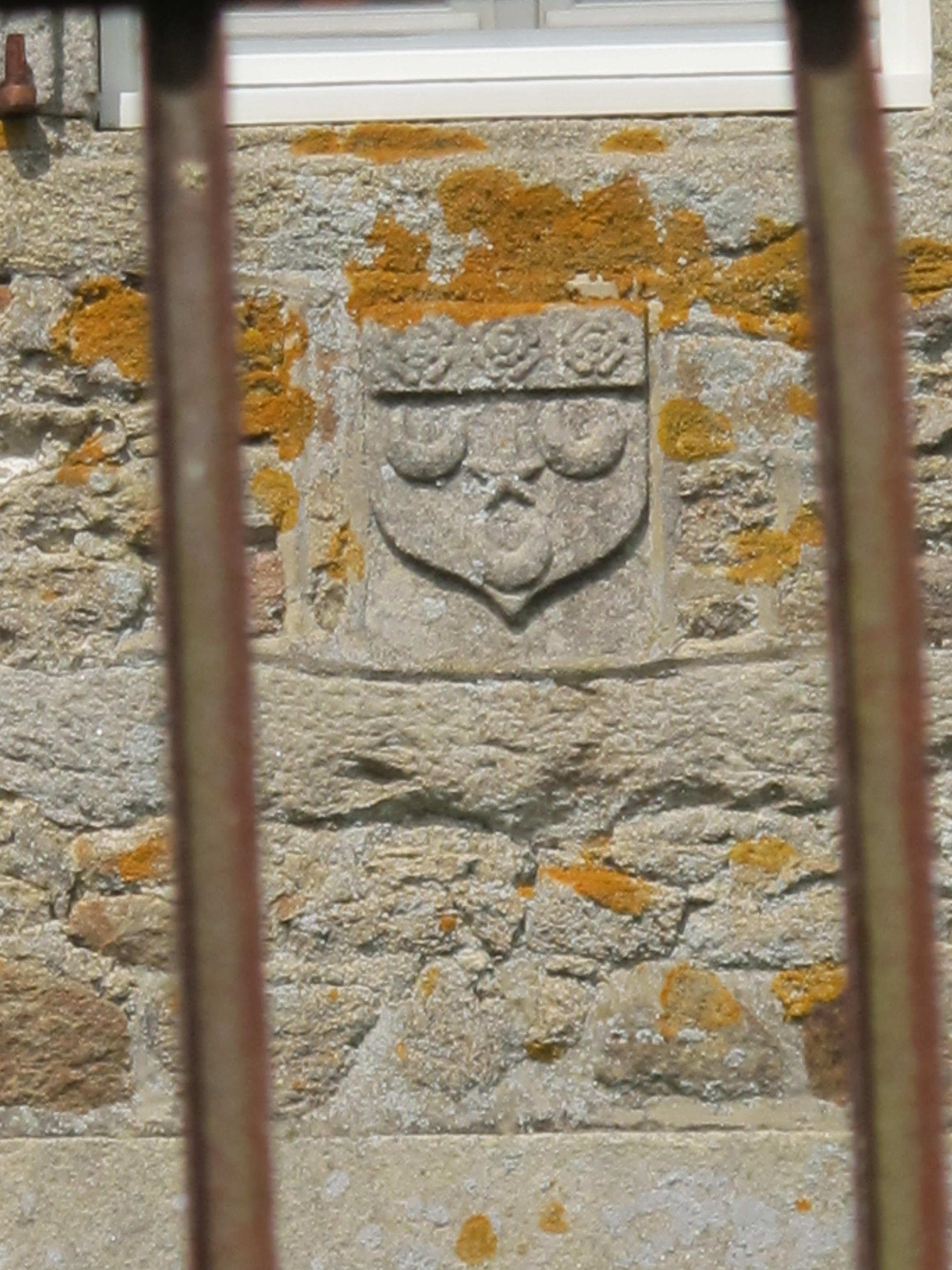 La Gâtinais, blason d'une branche possible de la famille Caradeuc. ( Bande supplémentaire, en chef, à trois roses)Immatriculation