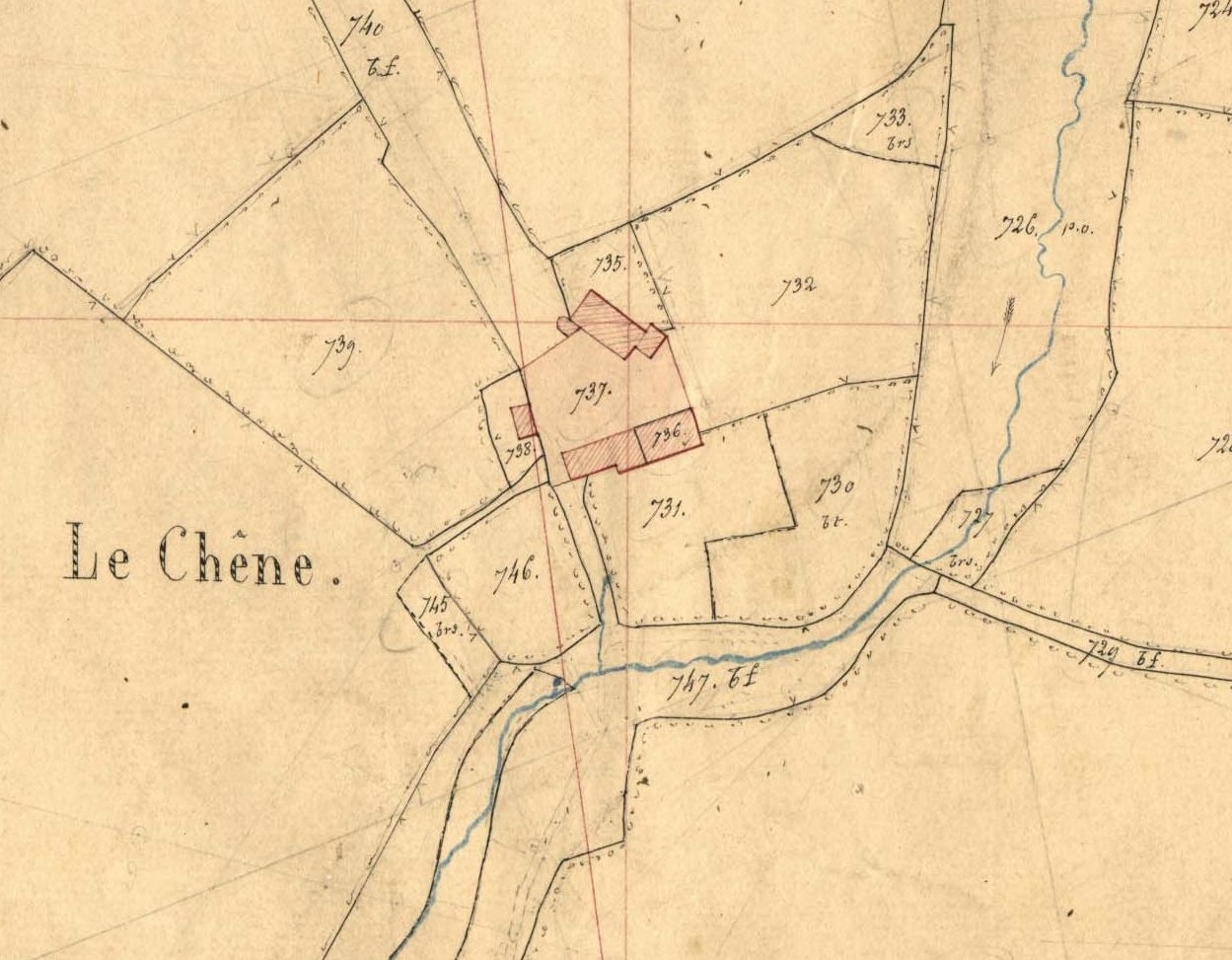 Extrait du cadastre de 1843 section C parcelles 735 à 738Immatriculation