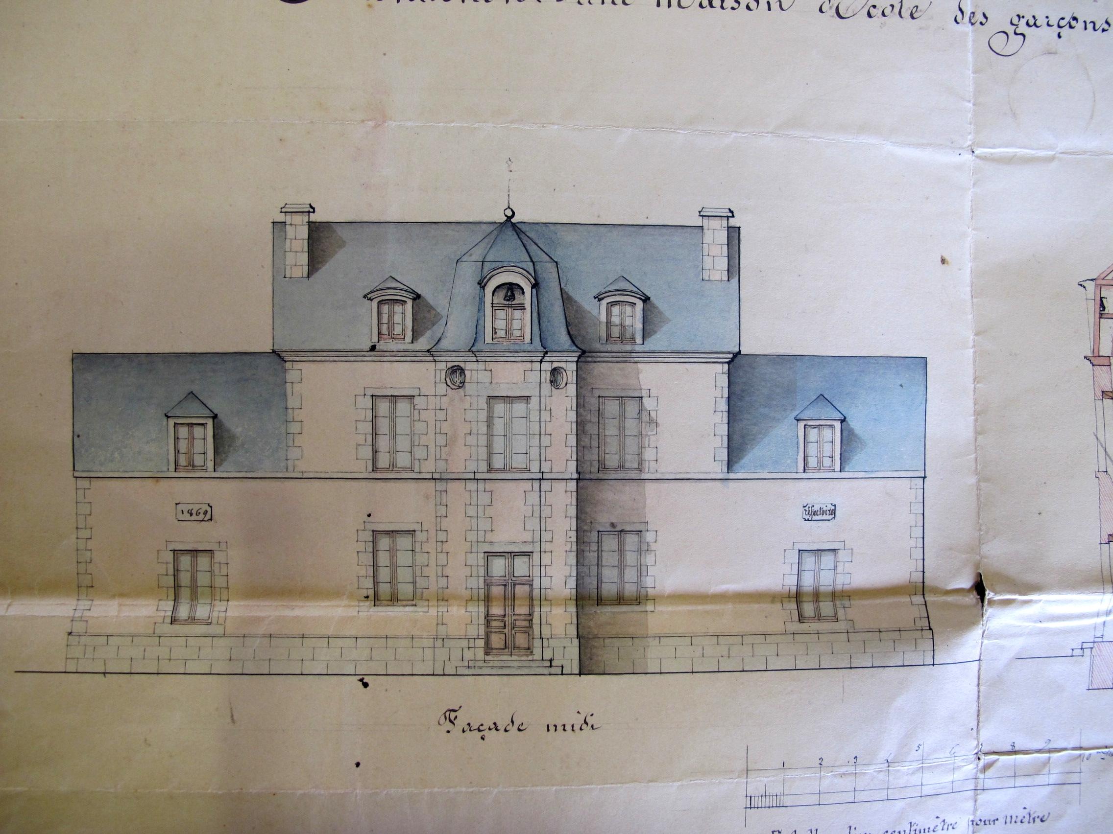 Autre projet de construction d'une école de garçons, élévation, façade midi, C. Ramard, 1869Immatriculation