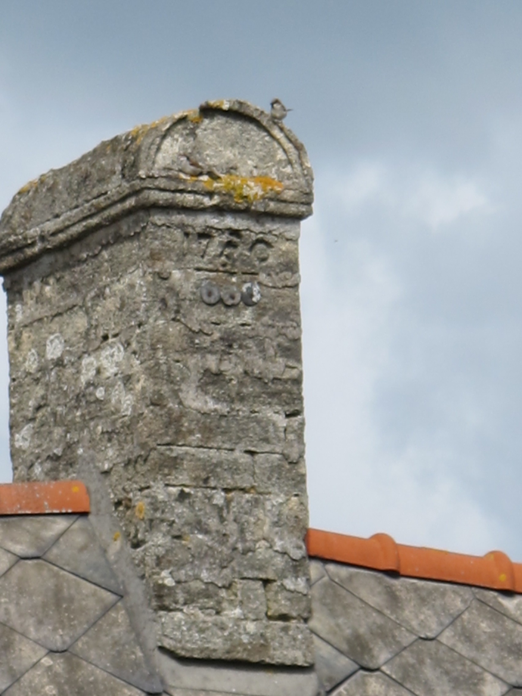 La Herviais, souche de cheminée en pierre des faluns datée 1750Immatriculation