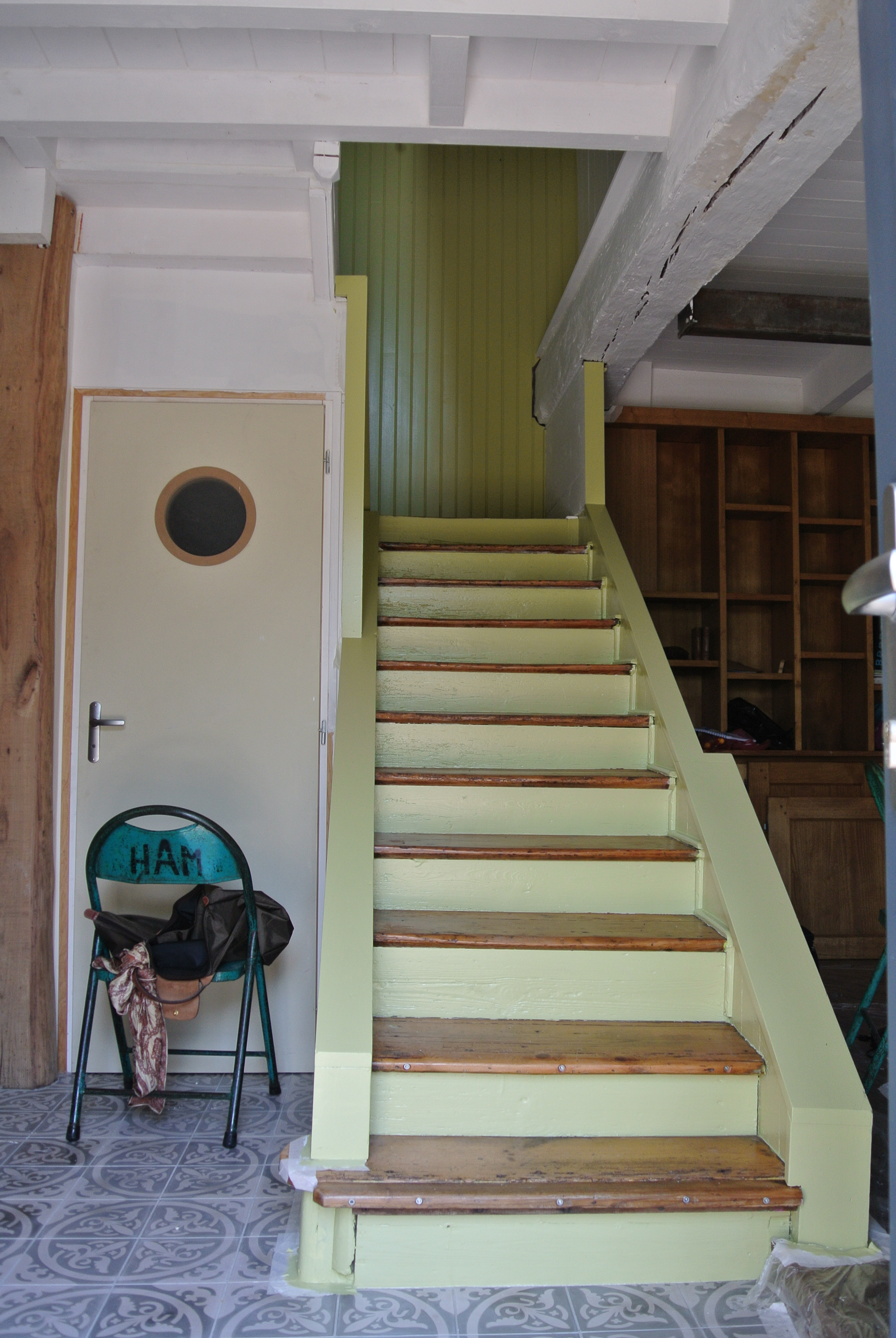 Quai des Goemoniers. Ancienne maison de batelier, 2e moitié 19e siècle. Escalier intérieur menant à l'étageImmatriculation