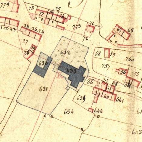 L'enclos paroissial en 1835. extrait du cadastre ancien (A.D. 22, sous-série 3P, section unique, feuille 2)Immatriculation
