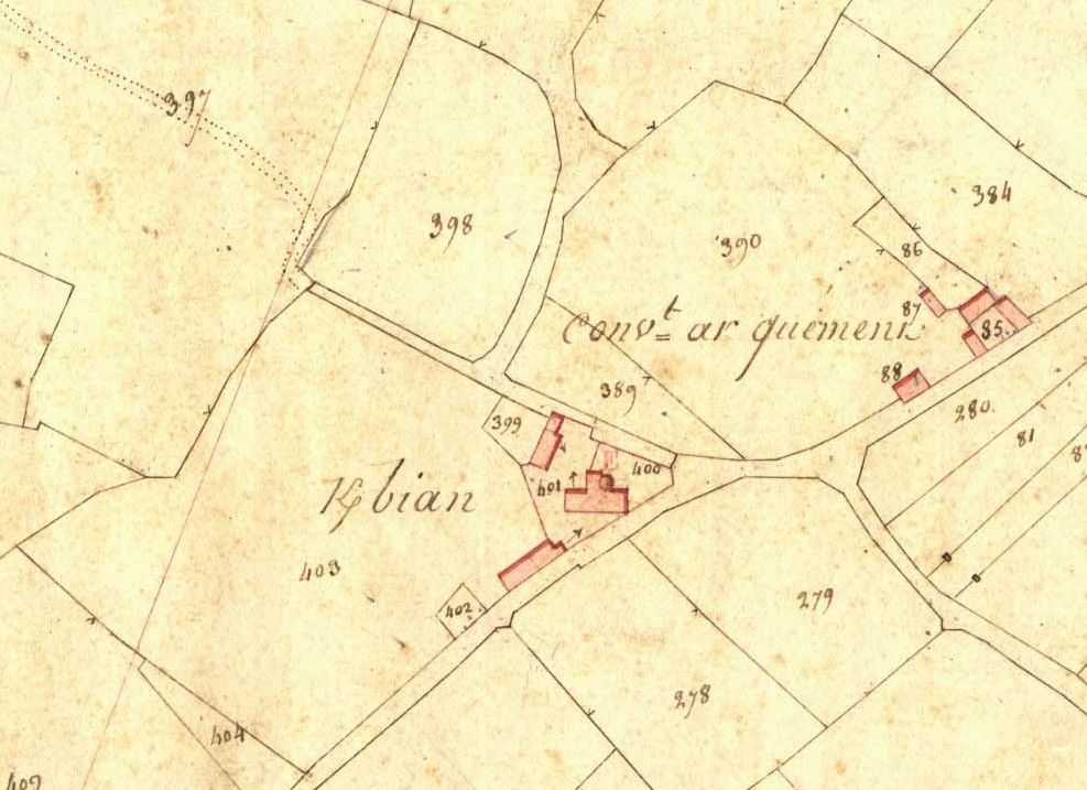 Kerbian en 1835. Extrait du cadastre ancien (A.D. 22, sous-série 3P, section unique 1ère feuille)Immatriculation