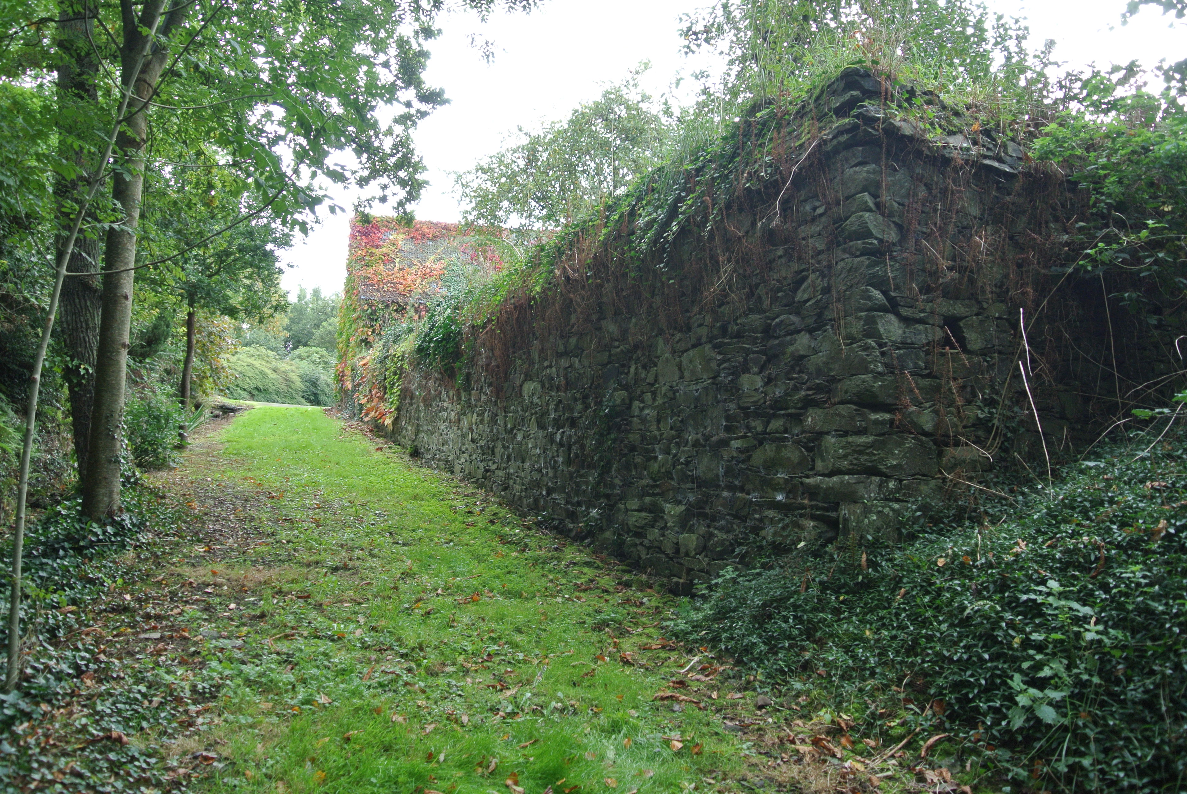 Chemin menant aux routoirs bordé du mur d'enclos de la fermeImmatriculation