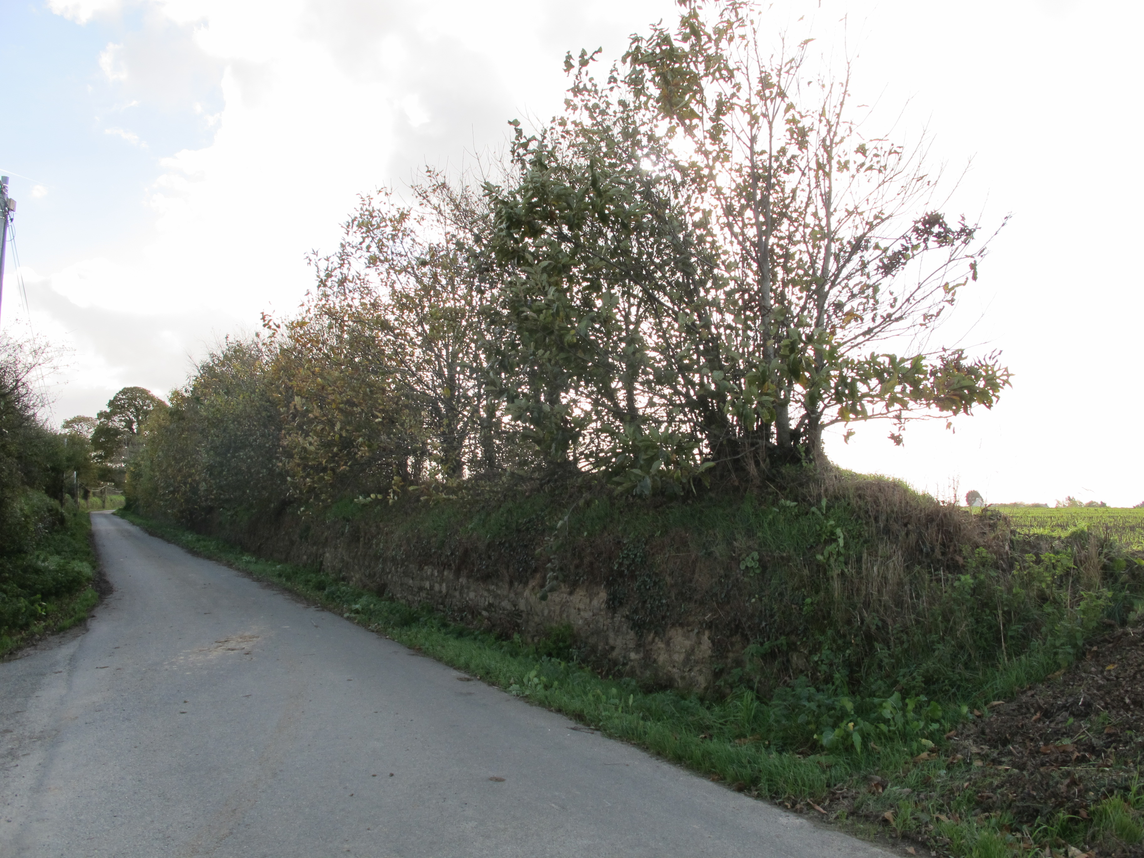 Kermeur (à l'ouest de). Route bordée de talus-mur. Vue généraleImmatriculation