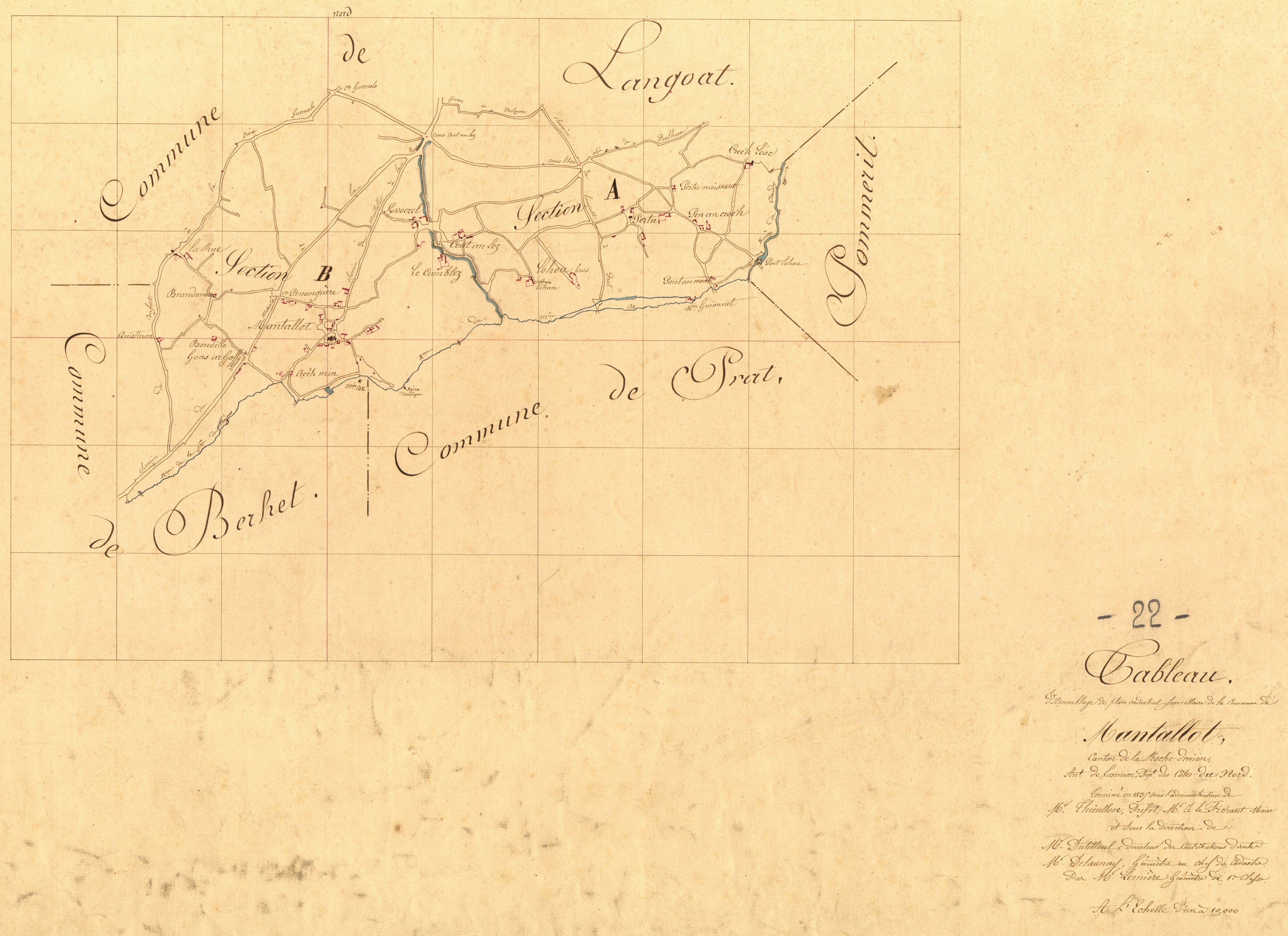 Tableau d'assemblage du cadastre ancien de la commune de Mantallot, 1835Immatriculation