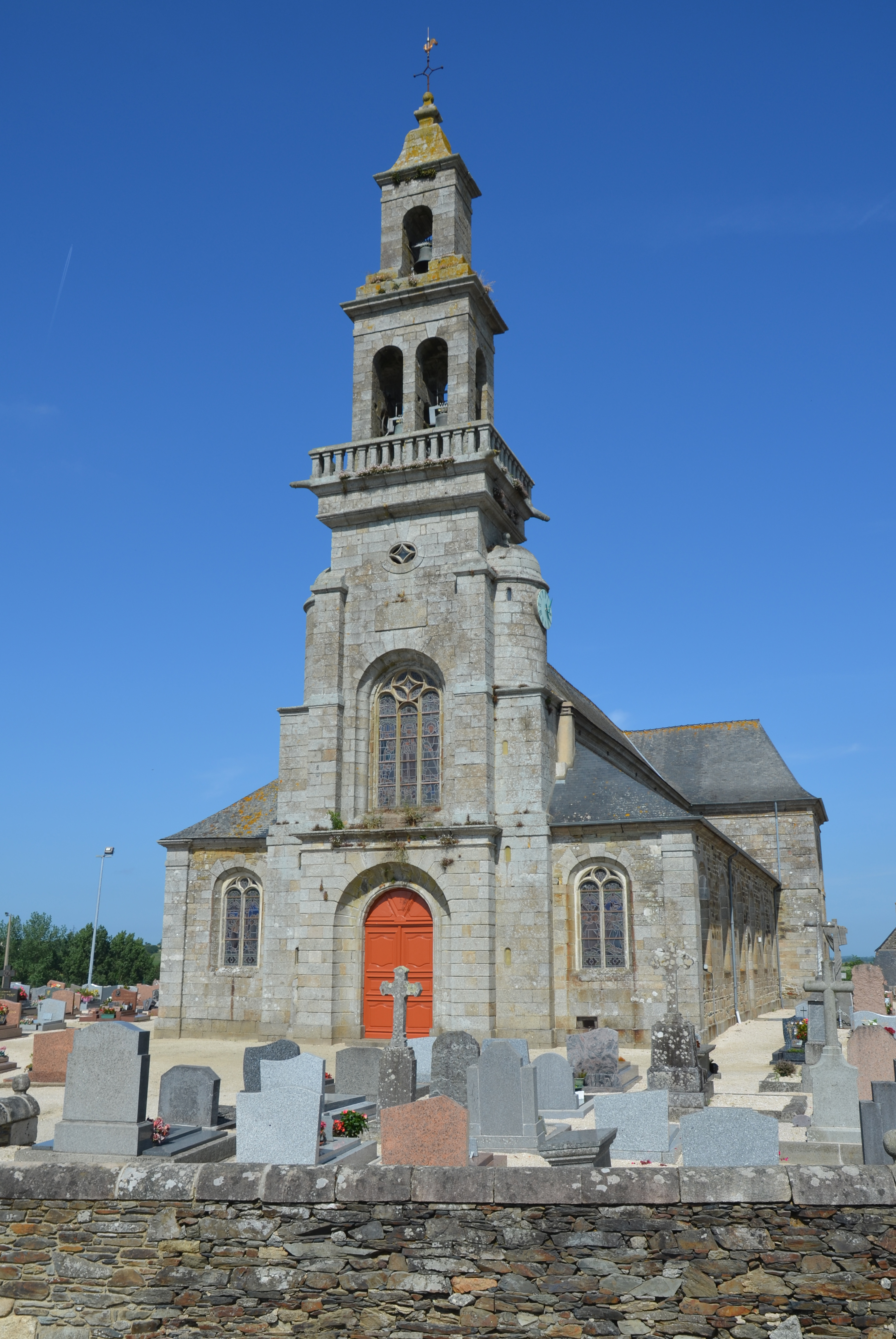 Langoat, le bourg : église paroissiale Sainte-Pompée, vue générale depuis l'ouest-sud-ouestImmatriculation