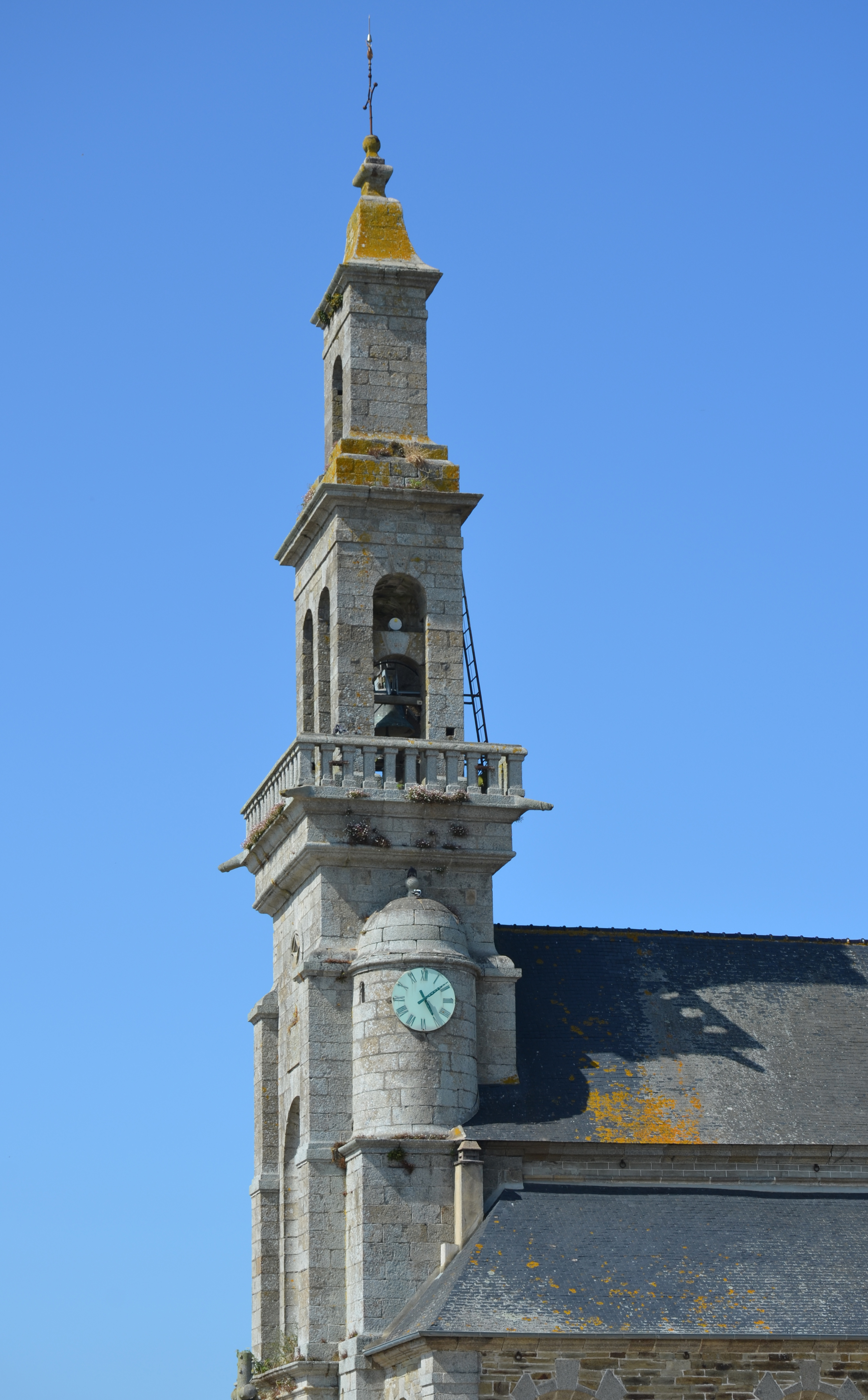 Langoat, le bourg : église paroissiale Sainte-Pompée, clocher-tour (profil), vue depuis le sudImmatriculation