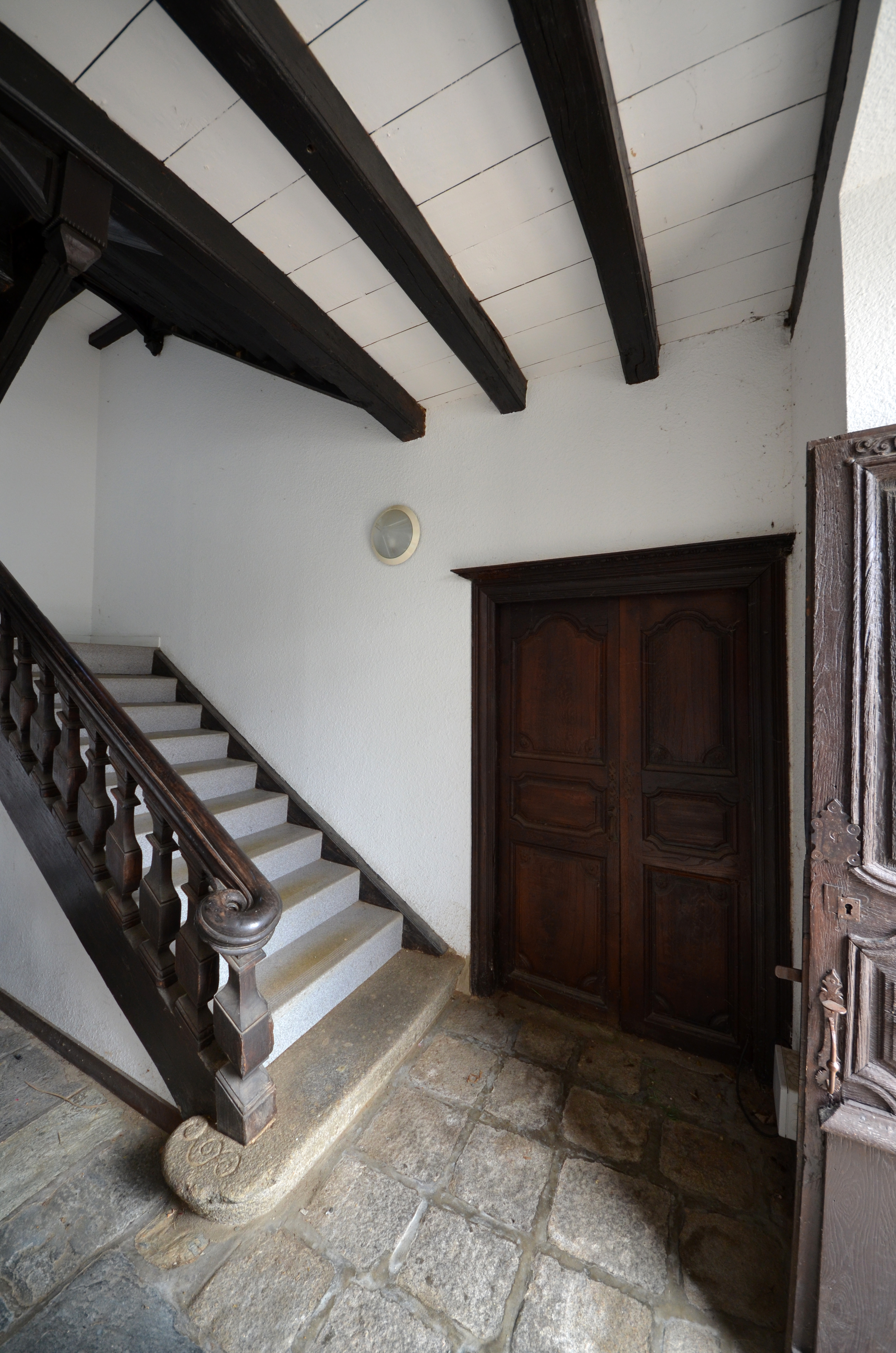 Langoat, le bourg : presbytère, intérieur, escalier rampe sur rampeImmatriculation