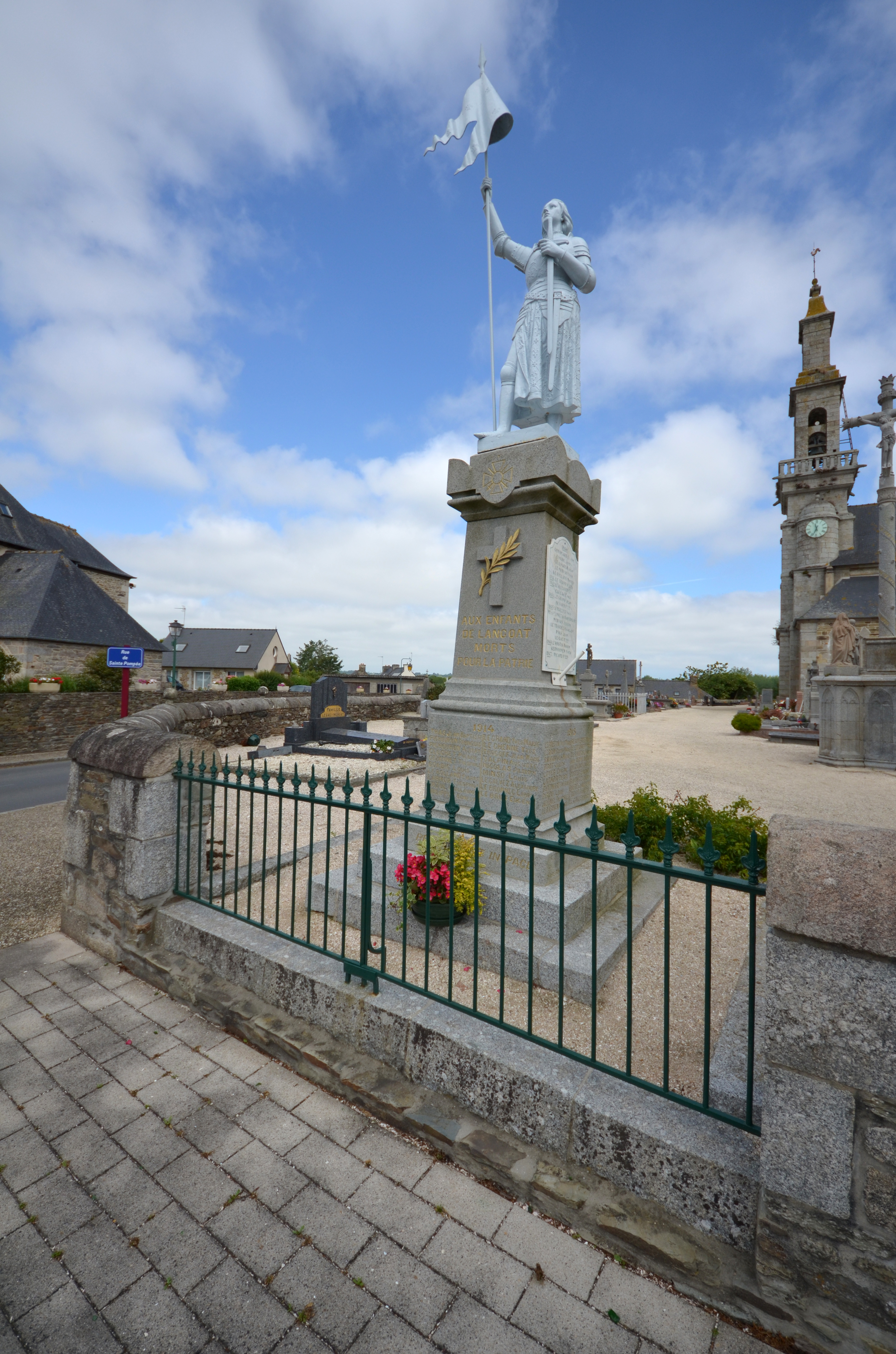 Langoat, le bourg : dans l'enclos de l'église paroissiale Sainte-Pompée, monument aux MortsImmatriculation