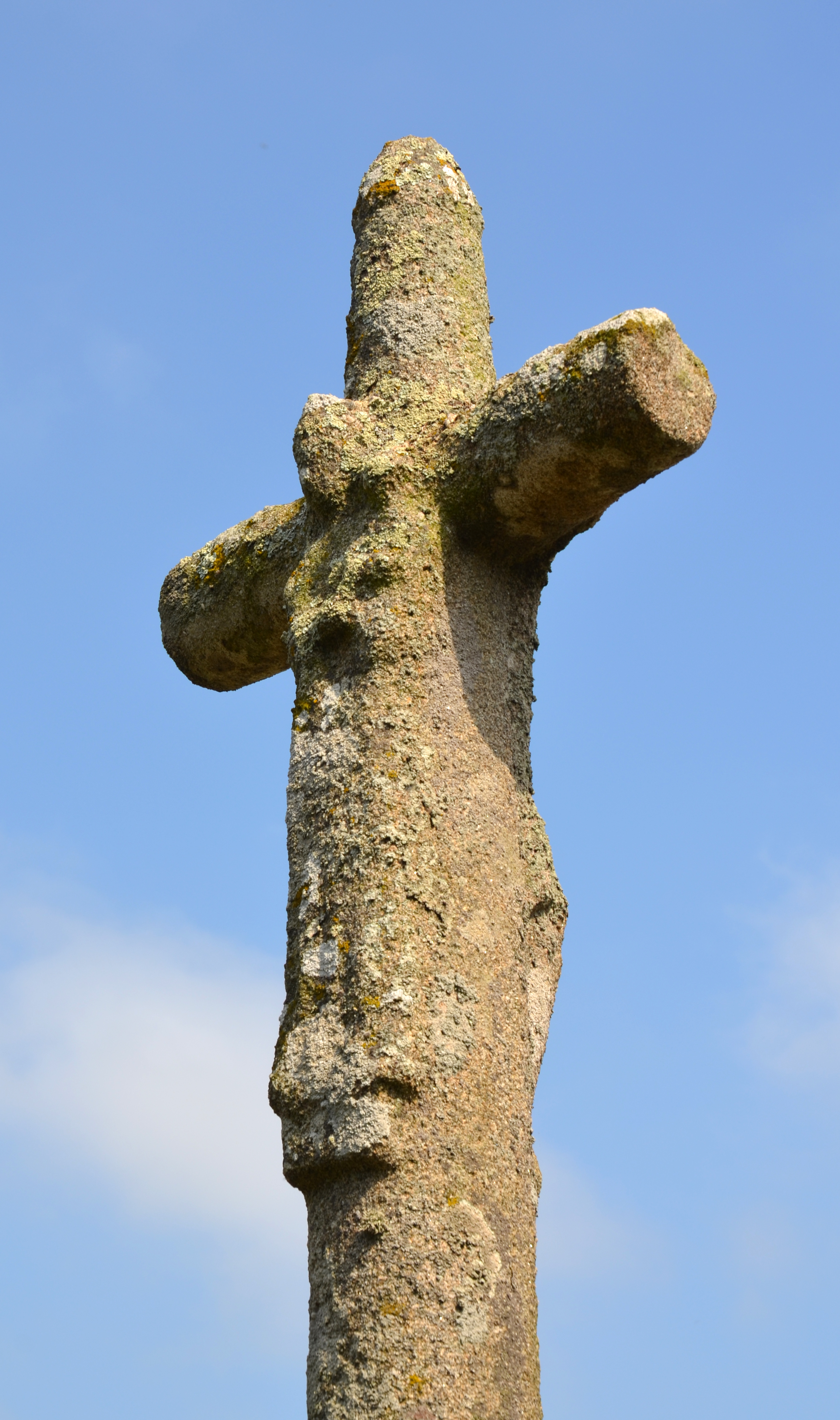 Langoat, Saint-Pierre : croix de chemin de Coat Croas (Koad Kroaz), détail de la Vierge à l'enfantImmatriculation