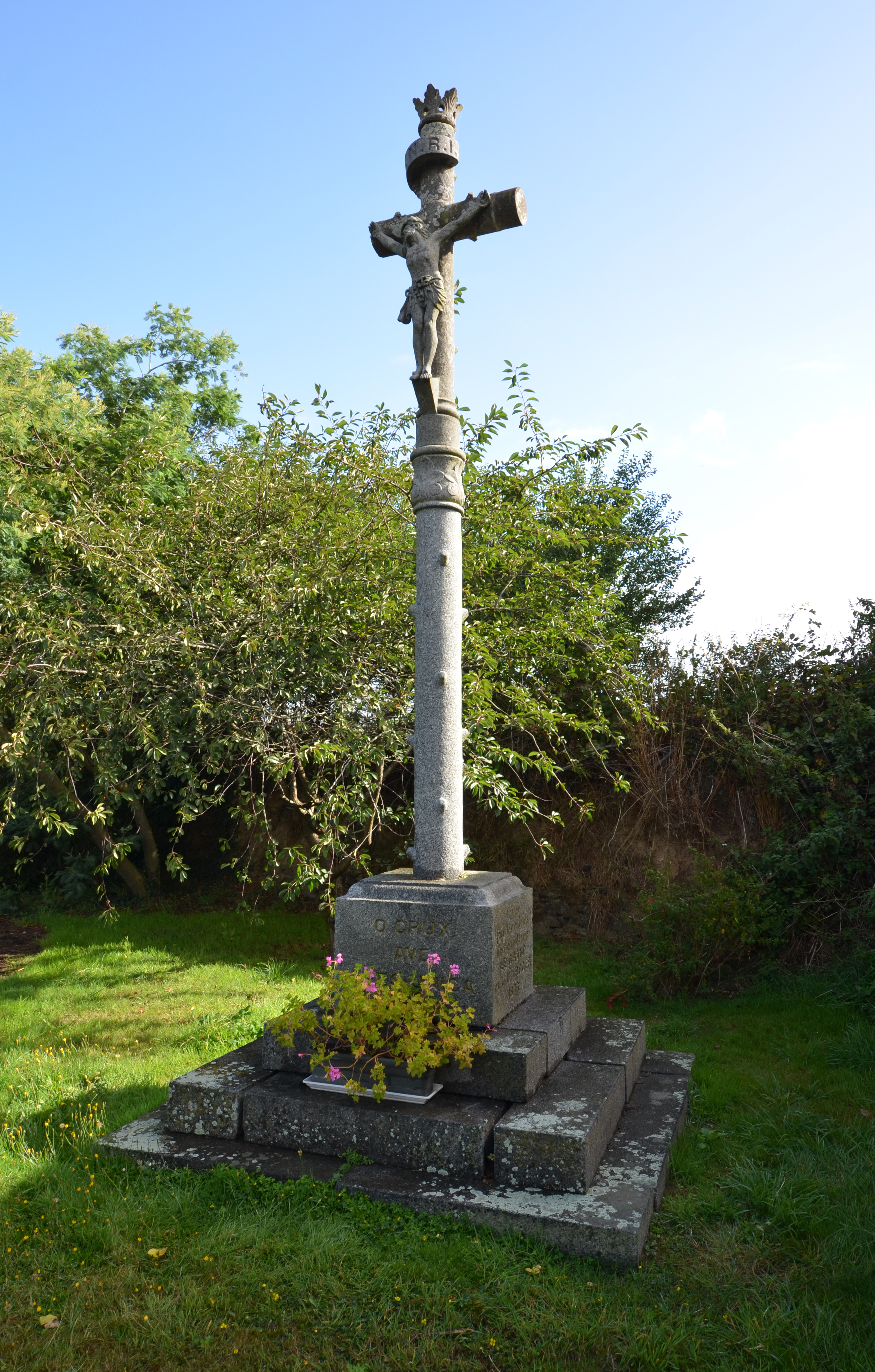 Langoat, Kergroaz : croix de chemin de type Hernot datée de 1876. Elle porte l'inscription suivante : "1876 / O crux ave spes unica / Erigée par les enfants de Jean-Marie Le Grand et de F[rançoise] Roger"Immatriculation