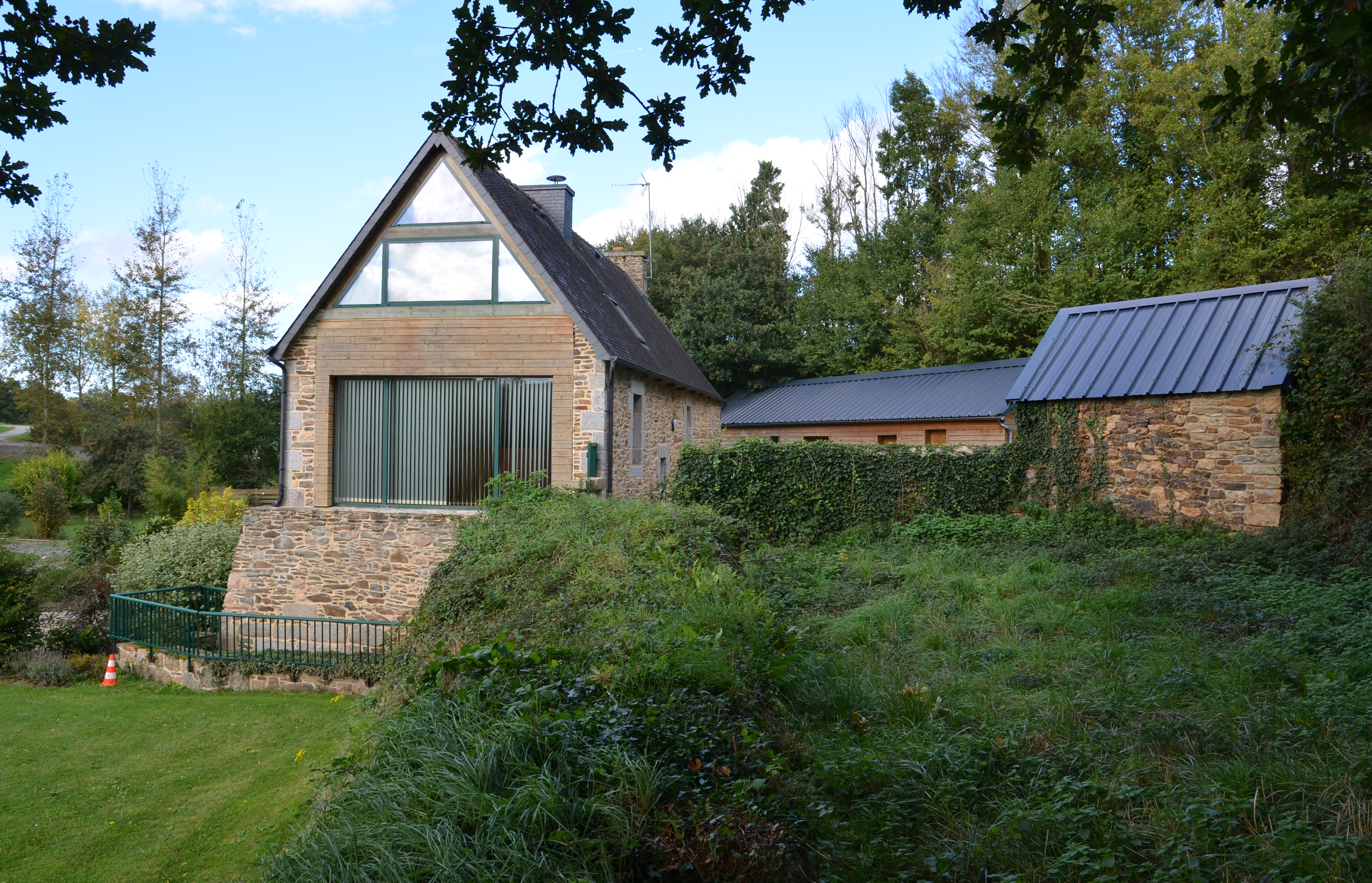 Langoat, Camblec : ancien moulin à eau de Camblec sur le Ruisseau du Stéren, vue générale depuis le bief au sudImmatriculation