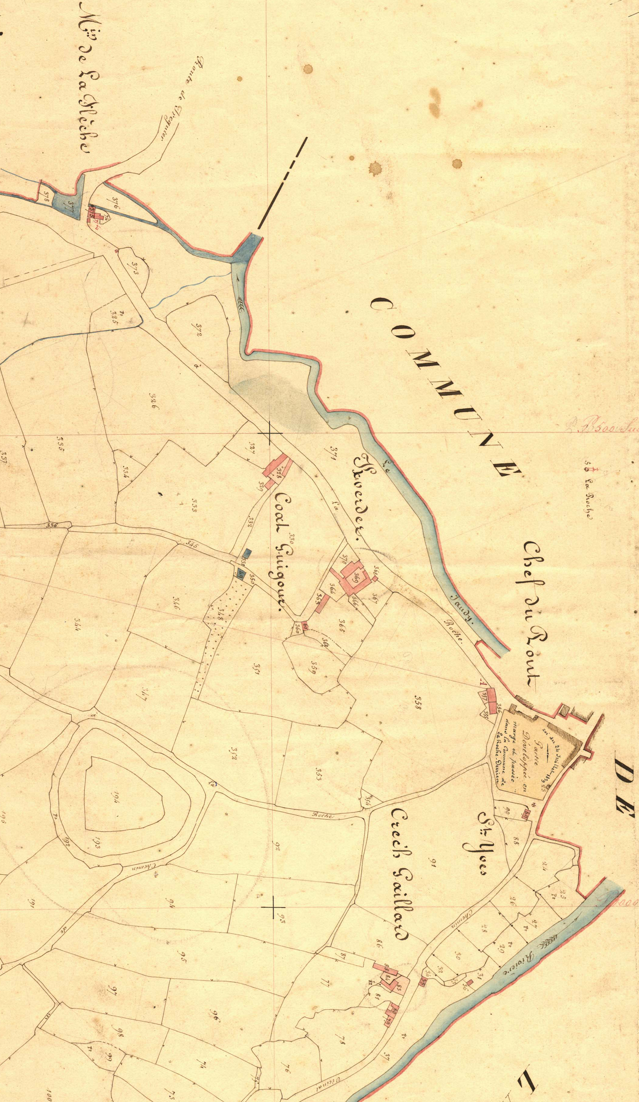 Extrait du cadastre ancien de la commune de Langoat, 1836 : Crec"h Gaillard, Saint Yves, Chef du Pont, Kerverder, Coat GuigourImmatriculation