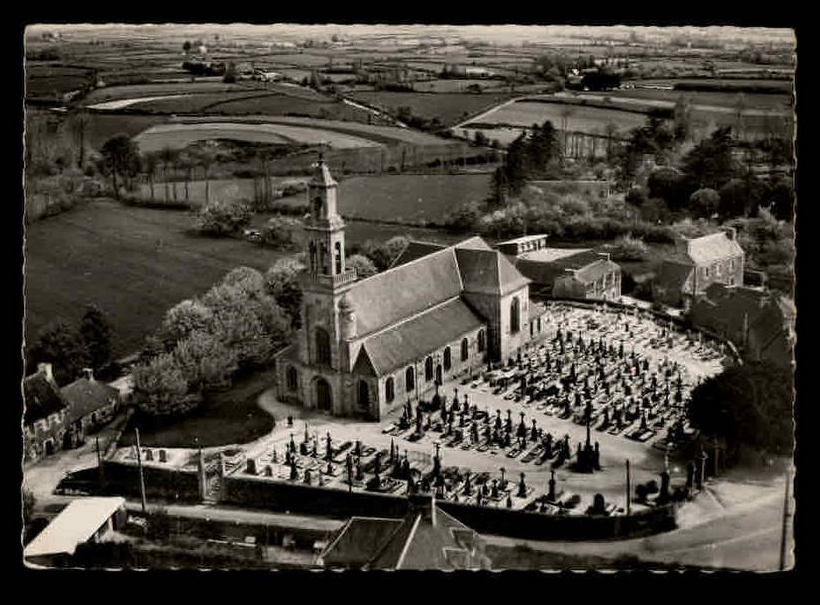 Langoat : vue aérienne oblique de l'église paroissiale Sainte-Pompée et du cimetière depuis l'ouest-sud-ouest, carte postale (collection particulière)Immatriculation