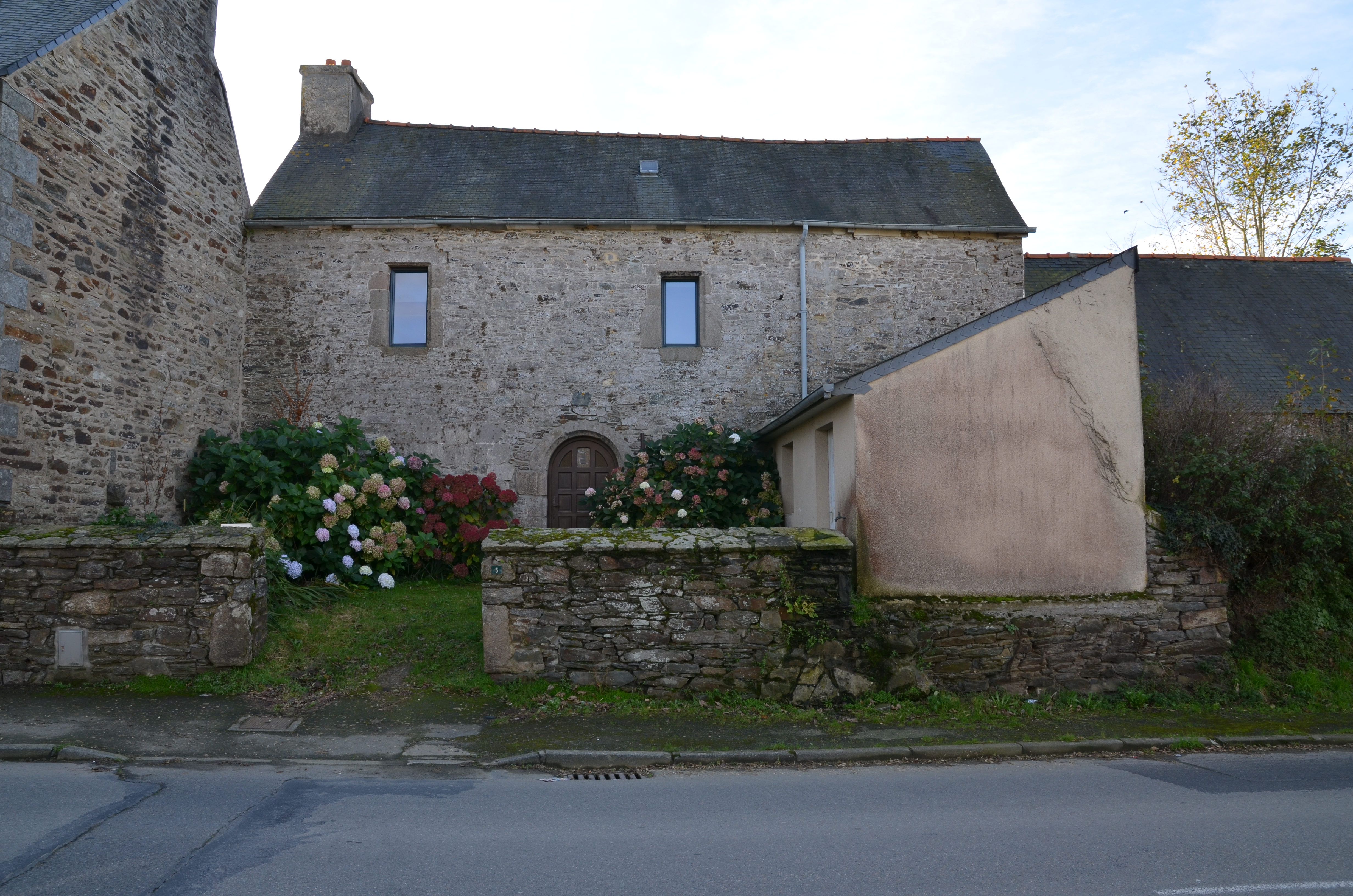 Langoat, le bourg (nord-ouest), rue Sainte-Pompée : maison datable du 17e siècle (la porte a été refaite ; une fenêtre murée). Elle a été fortement remaniée côté cour ; cet édifice a perdu son authenticitéImmatriculation