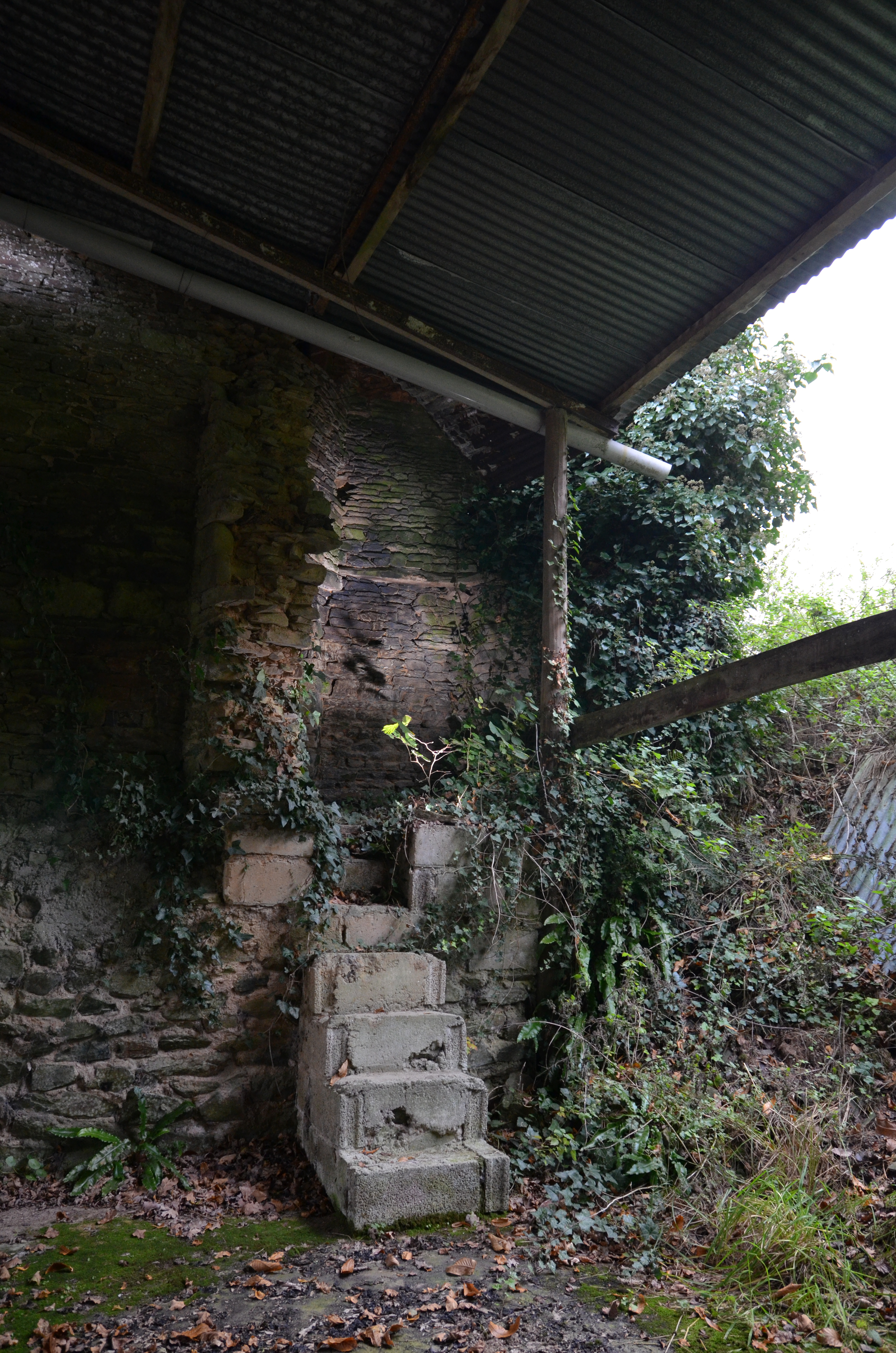 Langoat, Le Château : manoir de Lézeven, élévation postérieure orientée vers le nord, angle nord-ouest, vestiges de la tour d'escalierImmatriculation