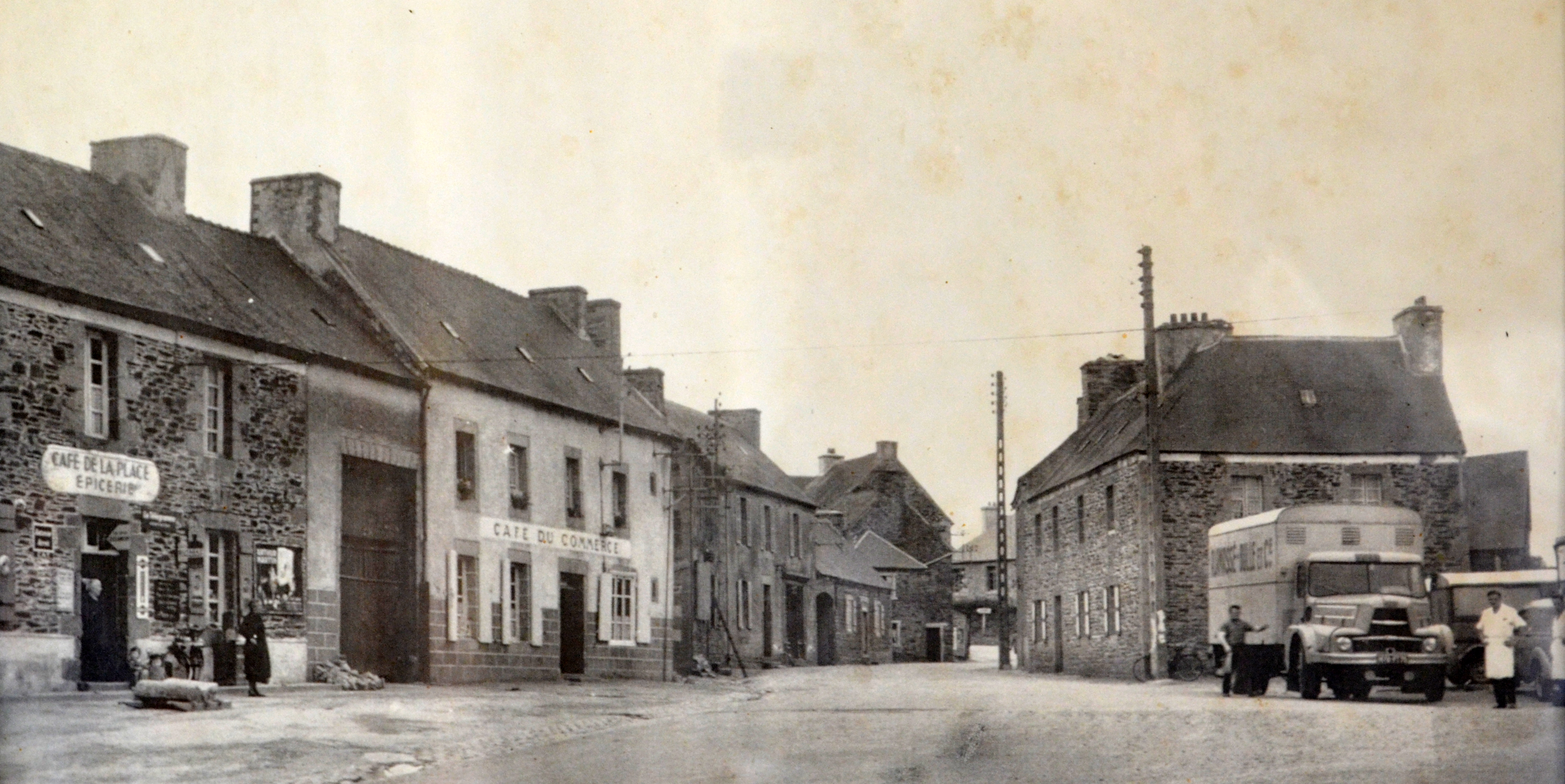 Langoat : le bourg et les commerces, la place de l'Église depuis l'est, photographie ancienne de madame Adam (collection particulière)Immatriculation