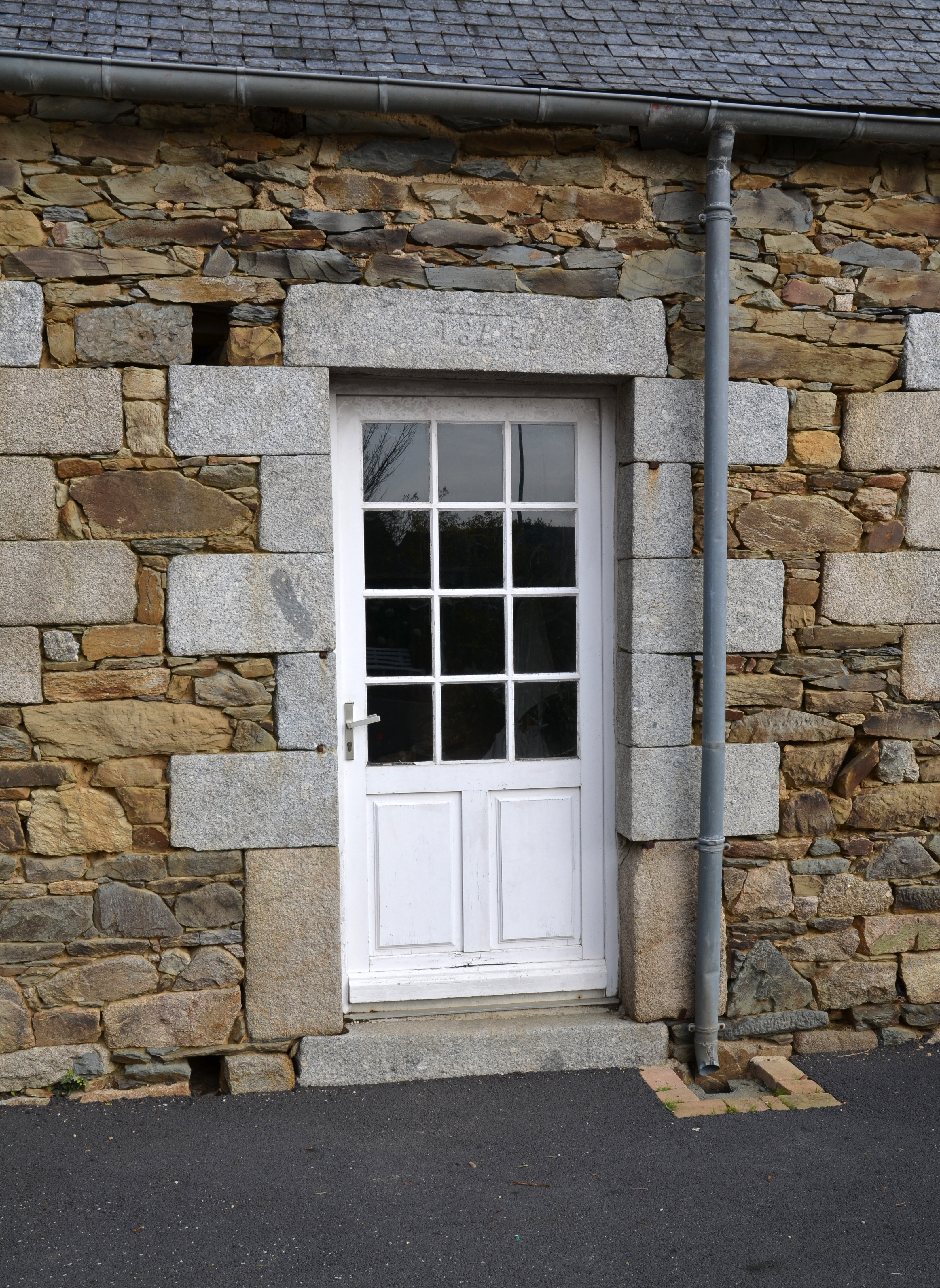 Langoat, Coat Croas (Koad Kroaz) : dépendance, élévation antérieure orientée vers l'ouest-sud-ouest. Elle porte le millésime "1845"Immatriculation