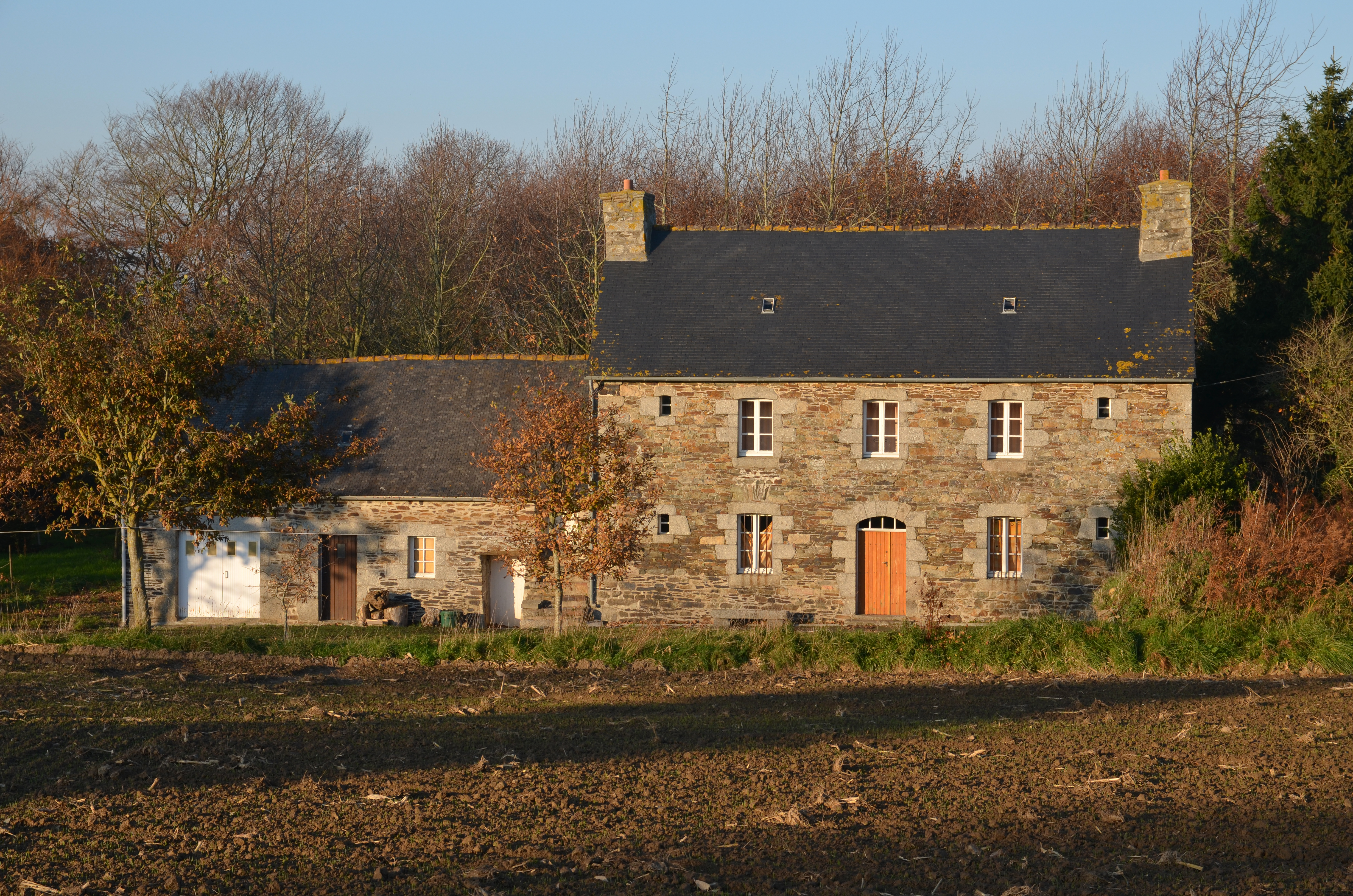 Langoat, Coat Mahé : ferme, élévation antérieure orientée vers le sud. La clé de la porte porte le millésime 1827Immatriculation