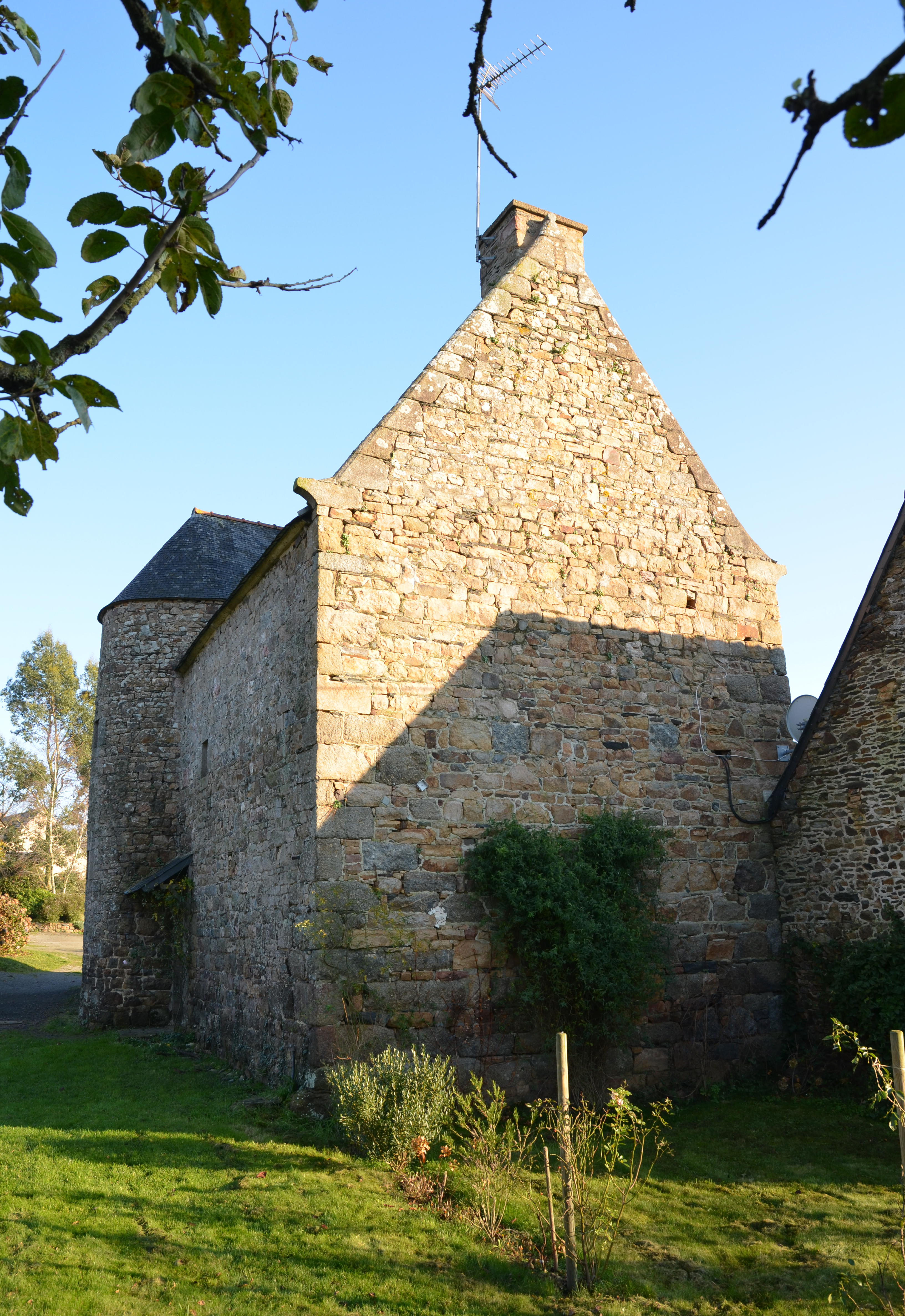 Mantallot, au nord du Bourg : manoir de Kerilis, pignon ouest à rampants et crossettes. Dans la maçonnerie, on retrouve en remploi des éléments de granite gris à gros grainImmatriculation