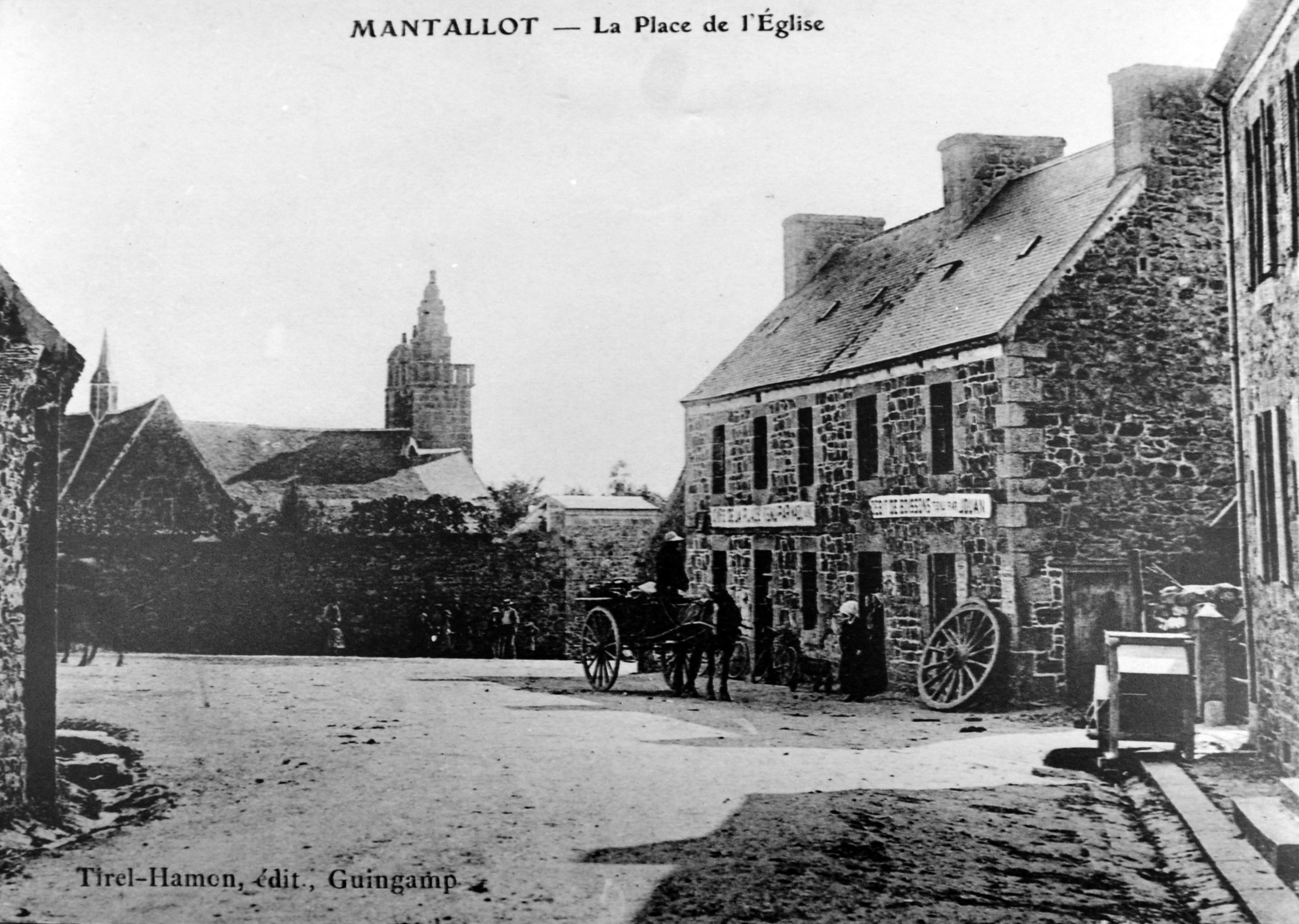 Mantallot : vue générale du bourg vers l'église paroissiale Saint Médéric depuis le nord, photographie antérieure à 1910 (la mairie n'a pas encore été construite), carte postale (collection patriculière)Immatriculation