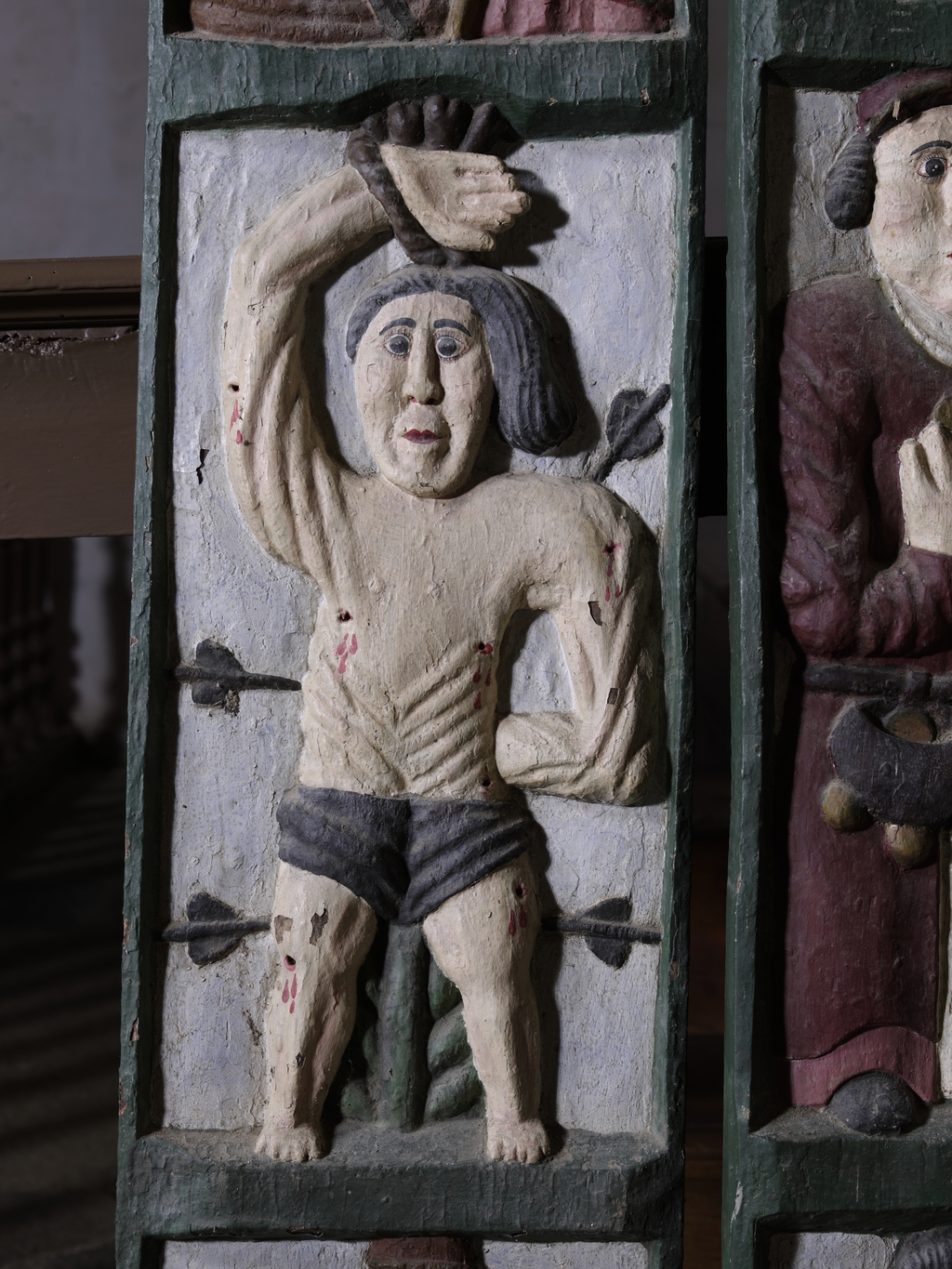 Volet sculpté, détailImmatriculation
