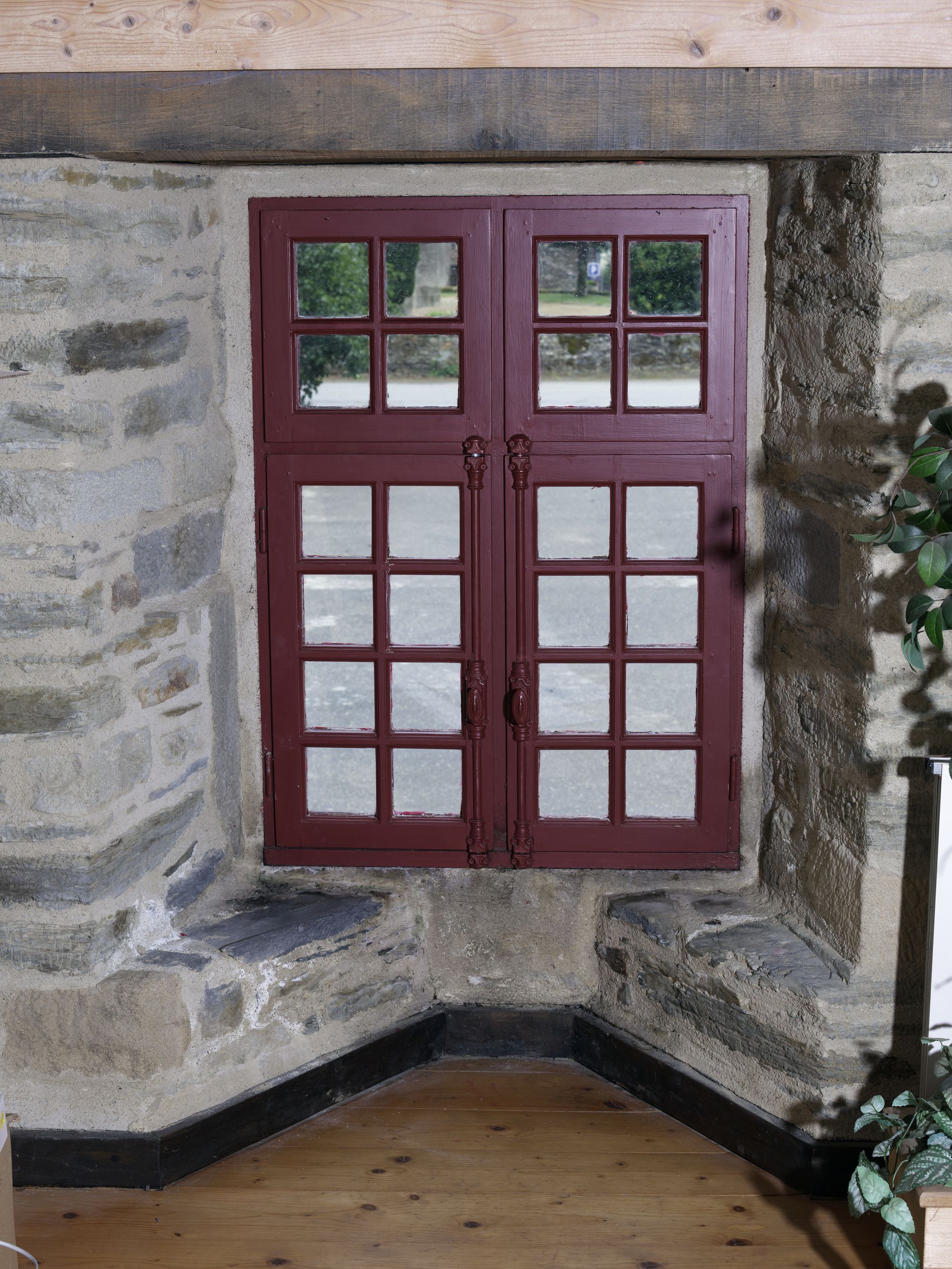 Place de la mairie. Maison à rangs de boulins en façade, fin 16e siècle-début 17e siècle (actuelle mairie). Détail des coussiègesImmatriculation