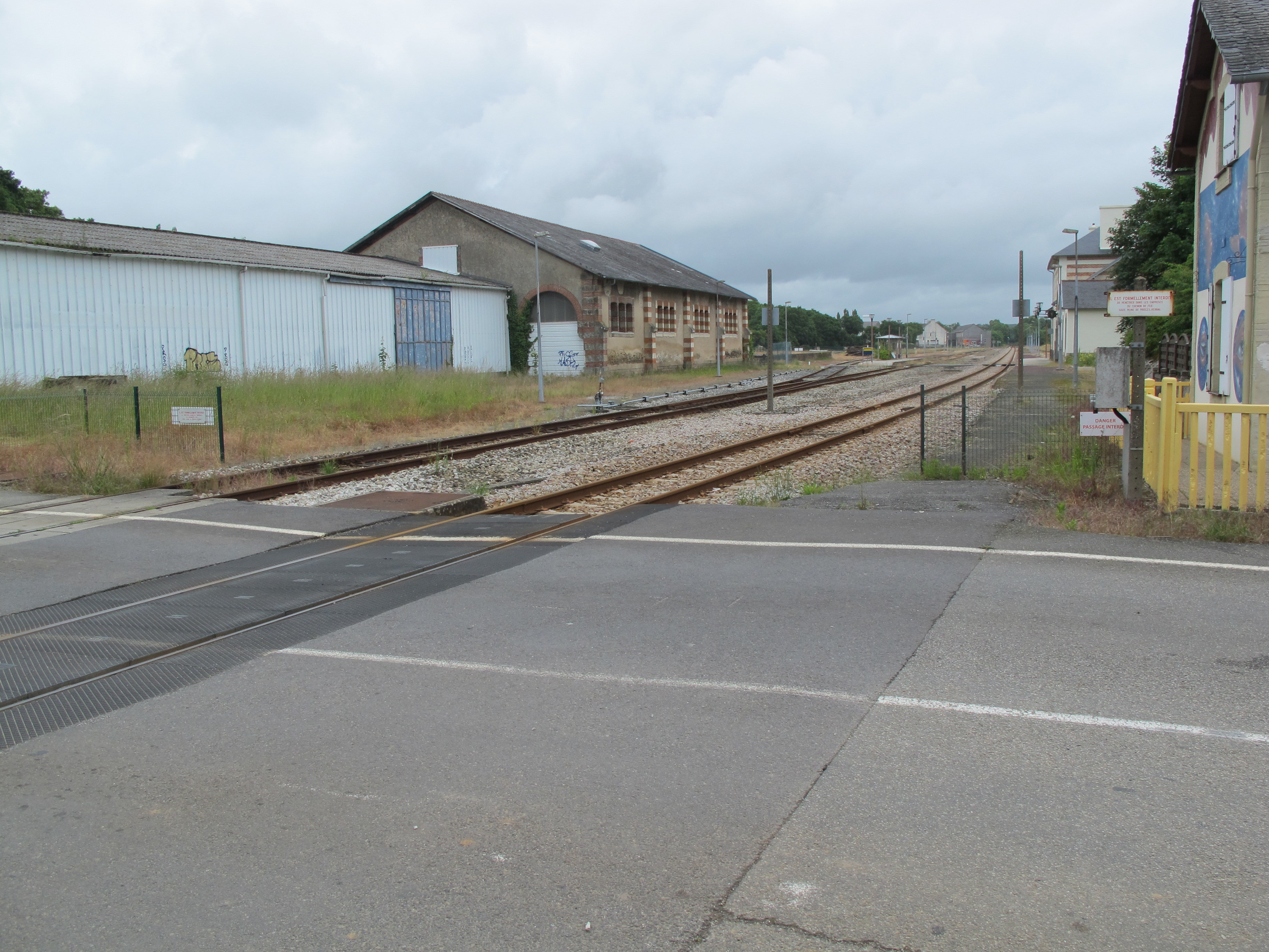 La gare, depuis le passage à niveau vers l'ancien entrepôt.Immatriculation