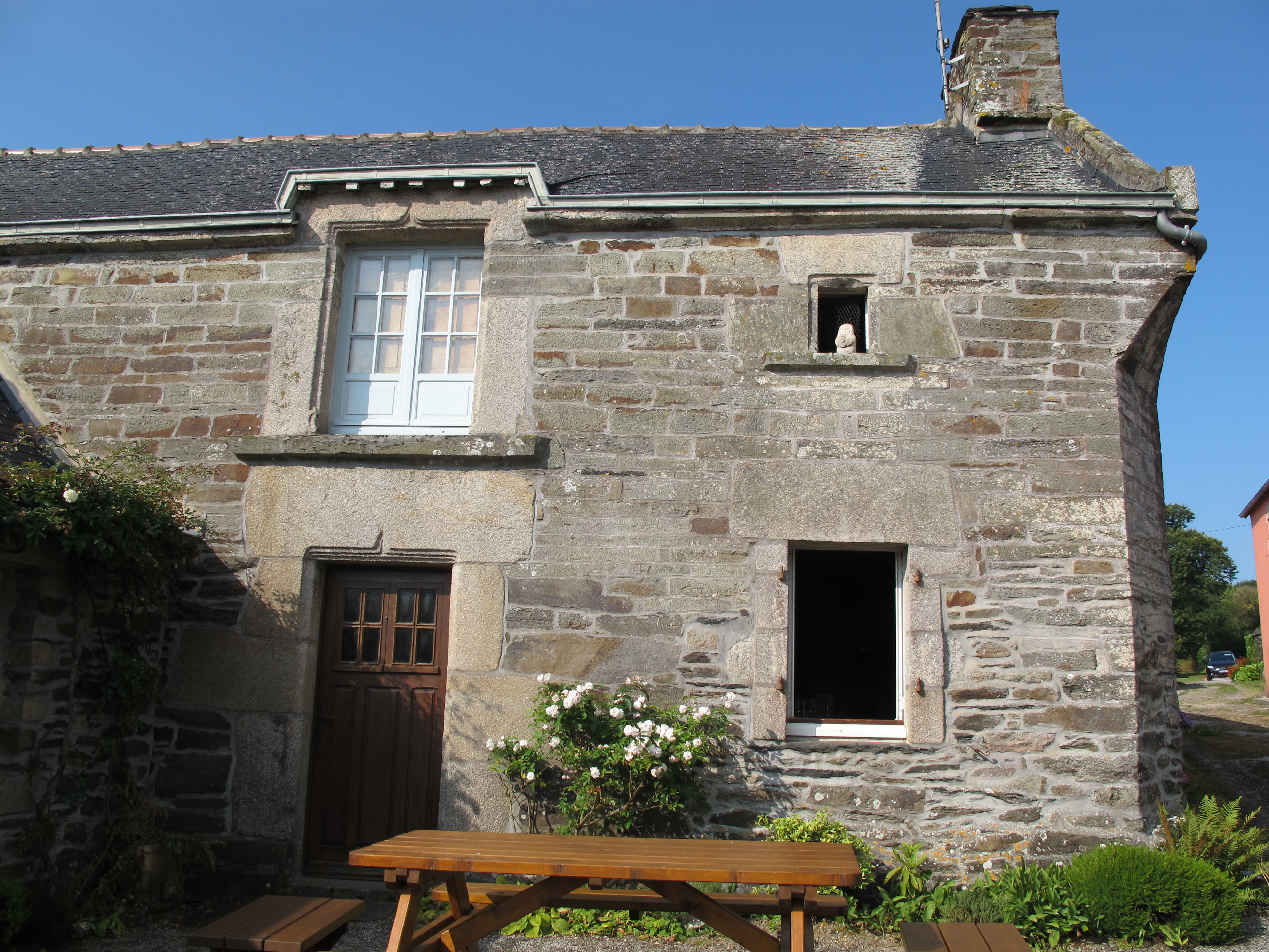 Kergudon. Logis 2, façade est, plusieurs remplois.Immatriculation