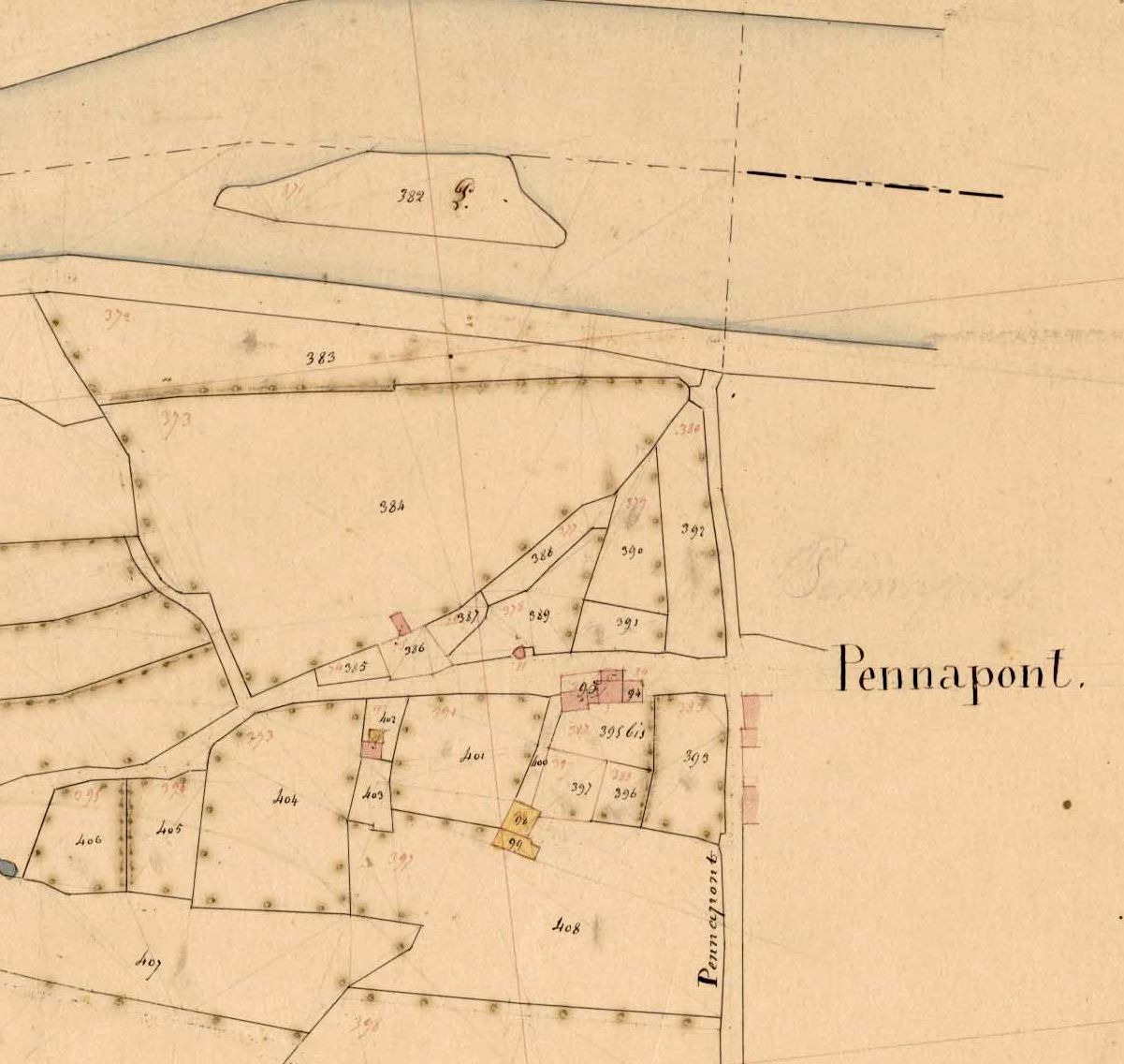 Extrait du cadastre de 1847. Section B, 4e feuille.Immatriculation