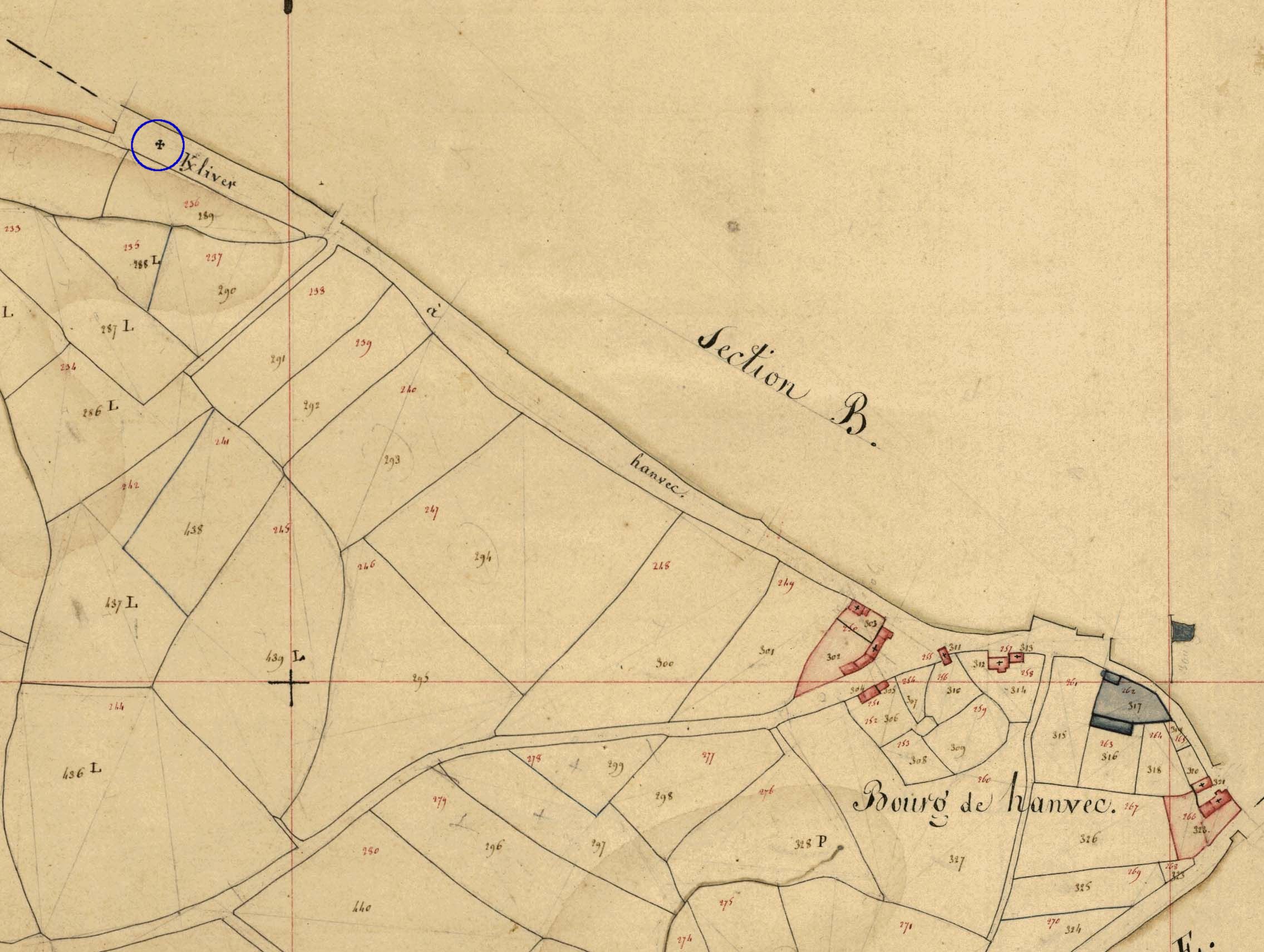 Emplacement du calvaire de Quillafel en 1824. Extrait du cadastre ancien (A.D. 29, série 3P 2/19. Section G2)Immatriculation