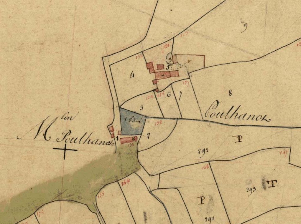 Le moulin de Poulhanol en 1824. Extrait du cadastre ancien (A.D. 29, série 3P 2/19. Section I1)Immatriculation