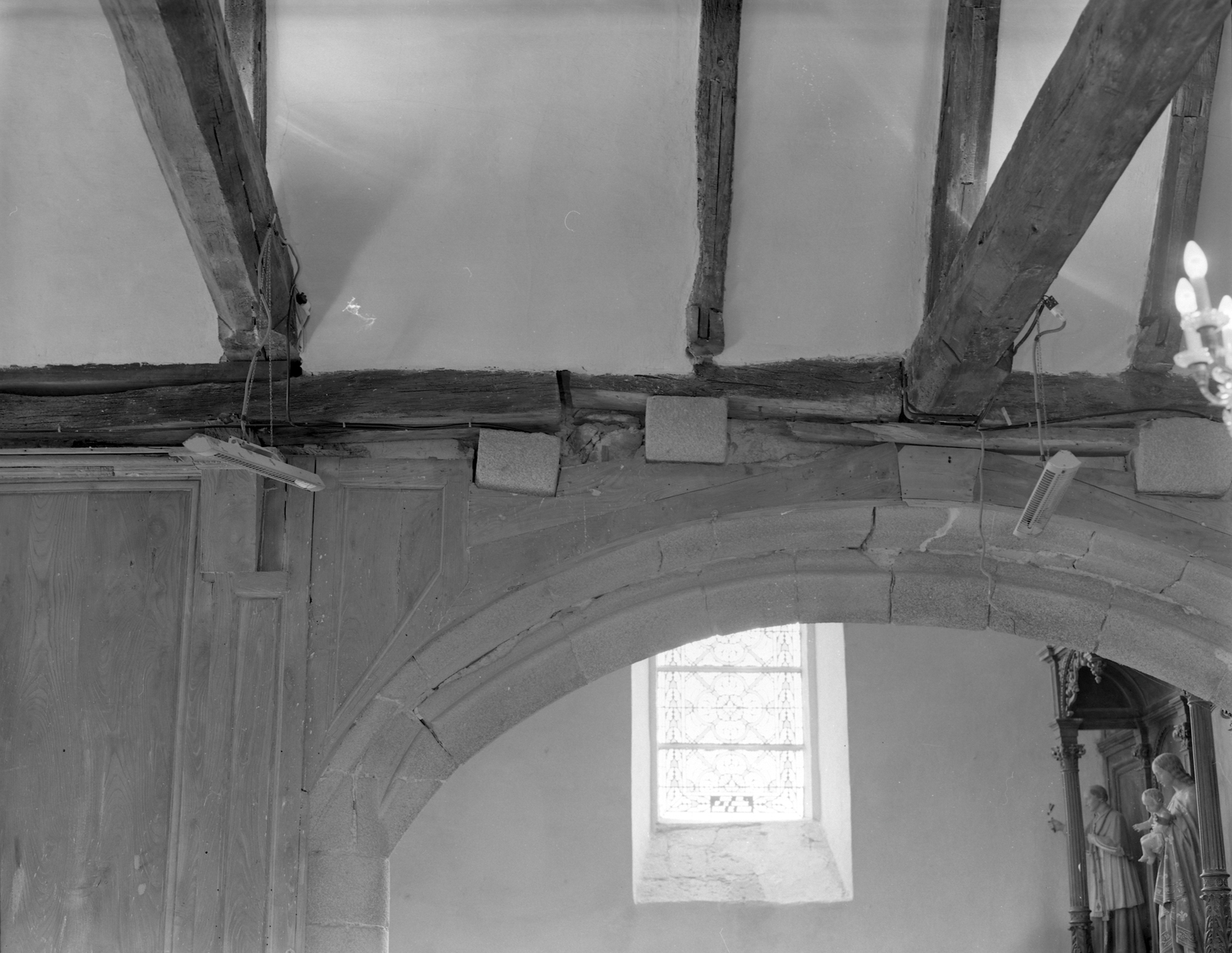 Vue intérieure, sablières et lambris de la nef, état vers 1980Immatriculation