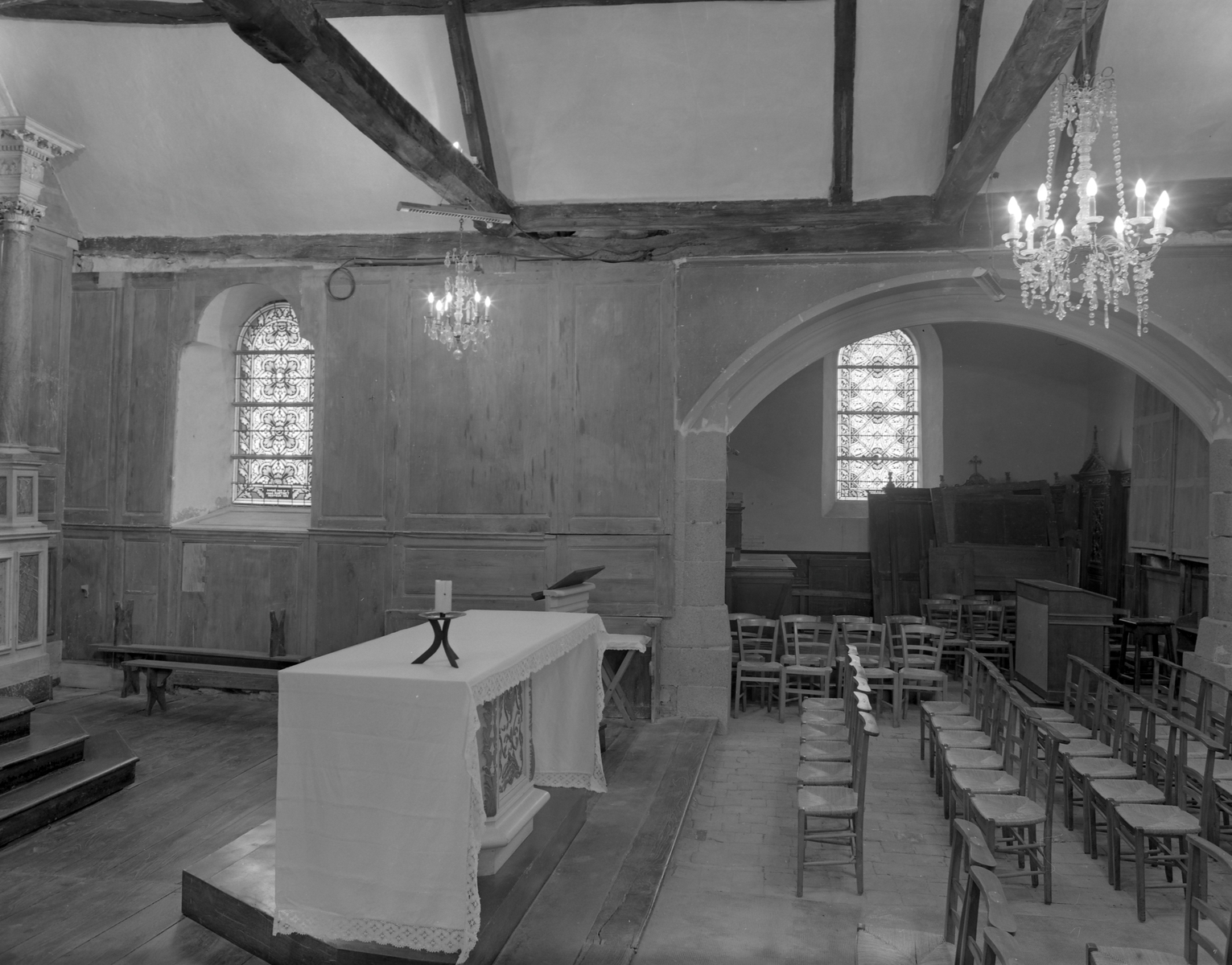 Vue intérieure prise du choeur vers la chapelle, état vers 1980Immatriculation