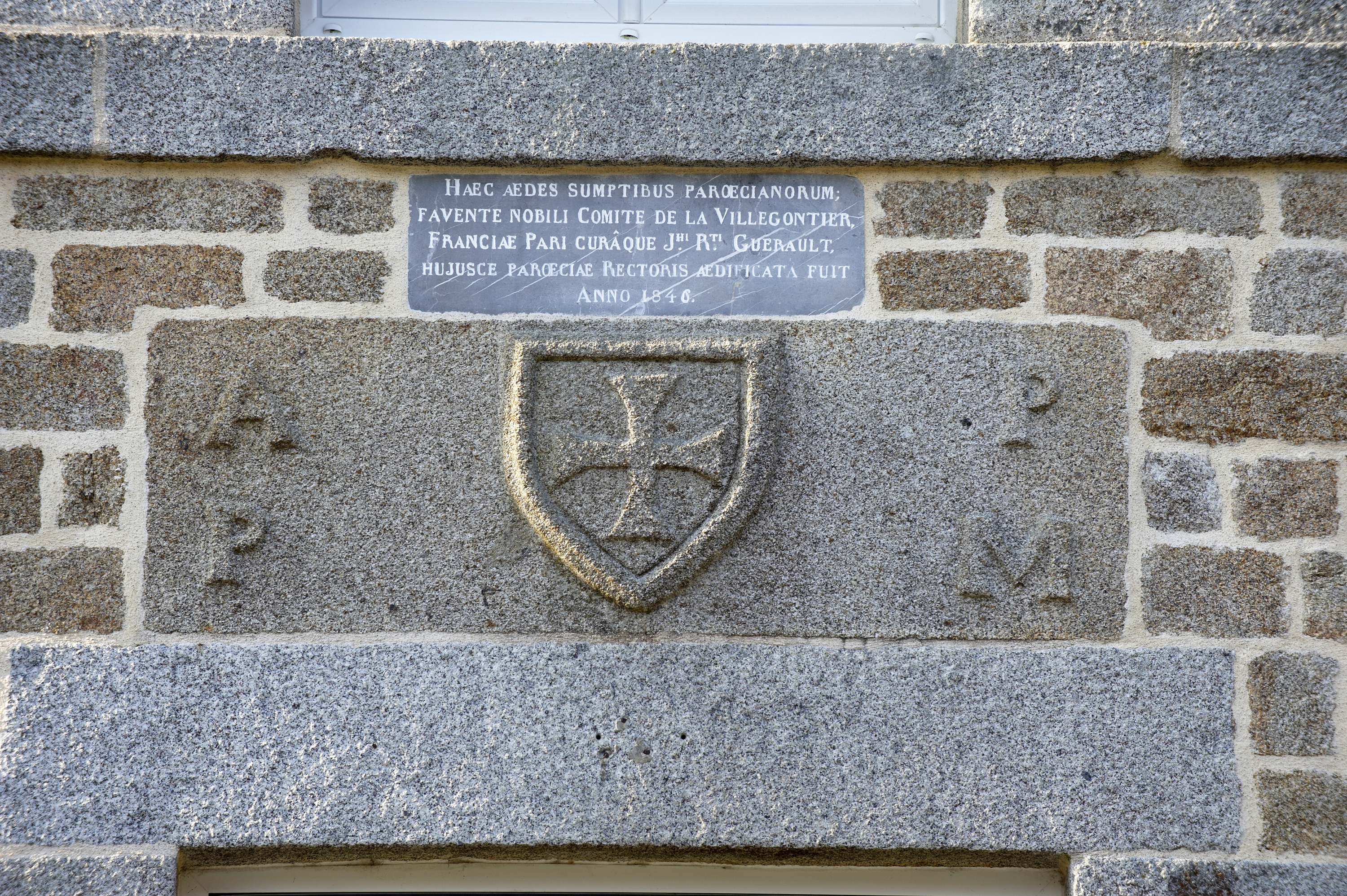 Détail de la pierre sculptée et de l'inscription au-dessus de la porteImmatriculation