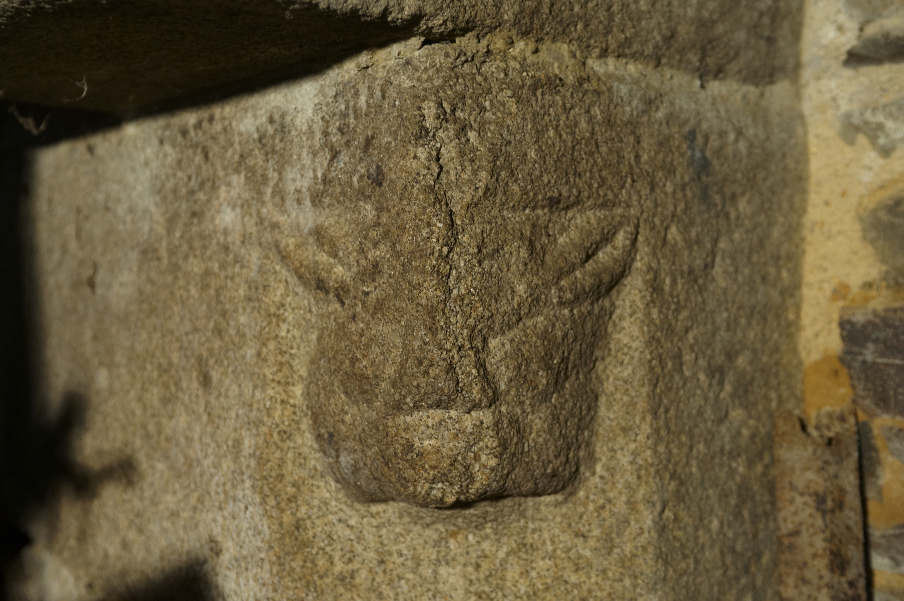 Ferme de la Houducière : tête d'animal ornant l'un des piédroits de la cheminéeImmatriculation