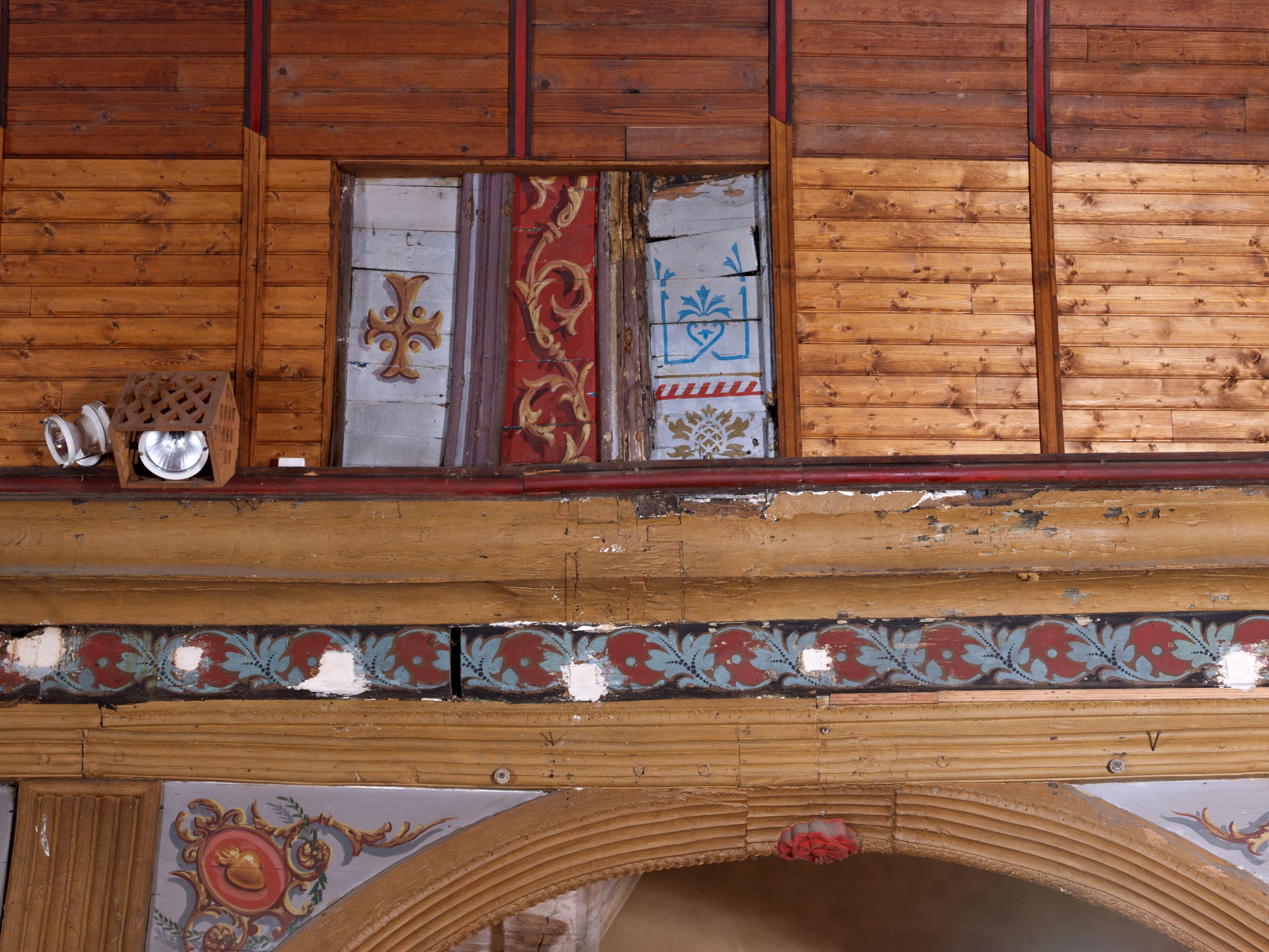 Vue de l'ancien et du nouveau lambris de revêtement de la voute de la nefImmatriculation