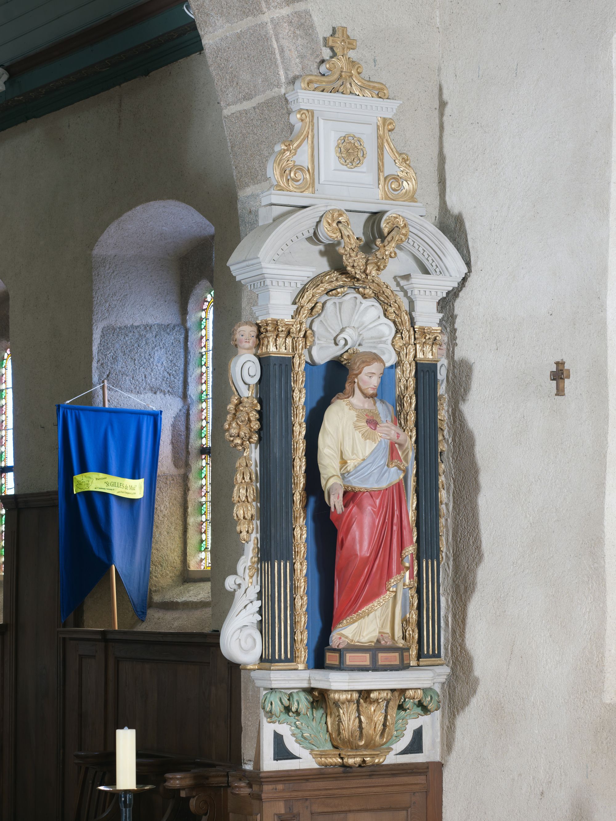Vue générale du retable et de la statue du Sacré-coeur situés au niveau de l'arcade du choeurImmatriculation