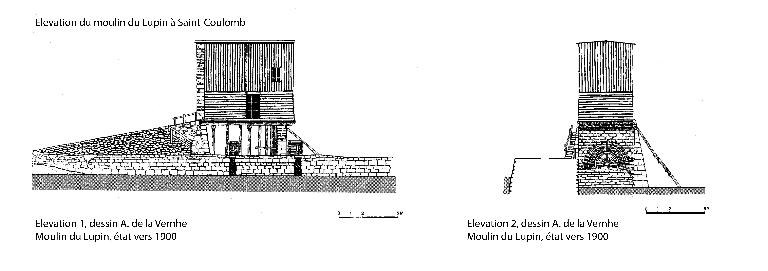 Elevation du moulin du Lupin ( Saint-coulomb), état vers 1900Immatriculation
