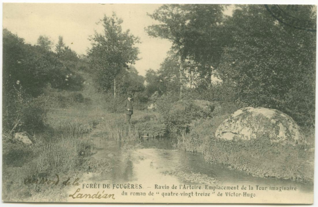 Ravin de l'Artoire - Emplacement de la tour imaginaire du roman "Quatre-vingt-treize" de Victor Hugo (carte postale)Immatriculation