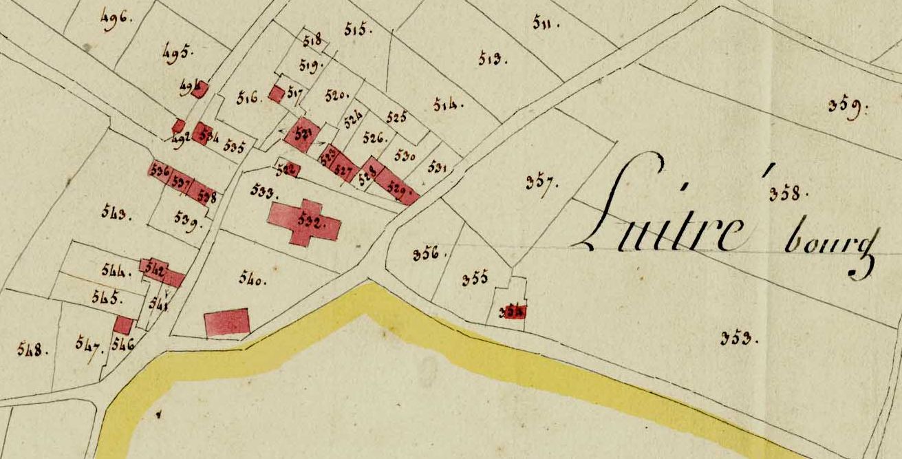 Extrait du cadastre de 1811 : partie nord du bourgImmatriculation