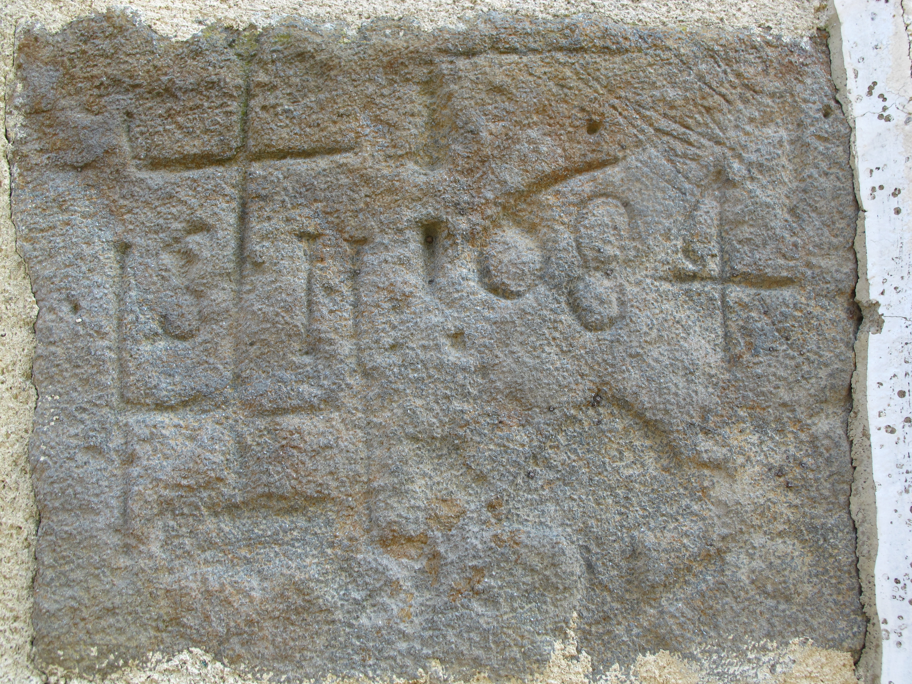 Pierre gravée d'une croix, du monogramme IHS et datée 1684 (Le Bois Haye)Immatriculation