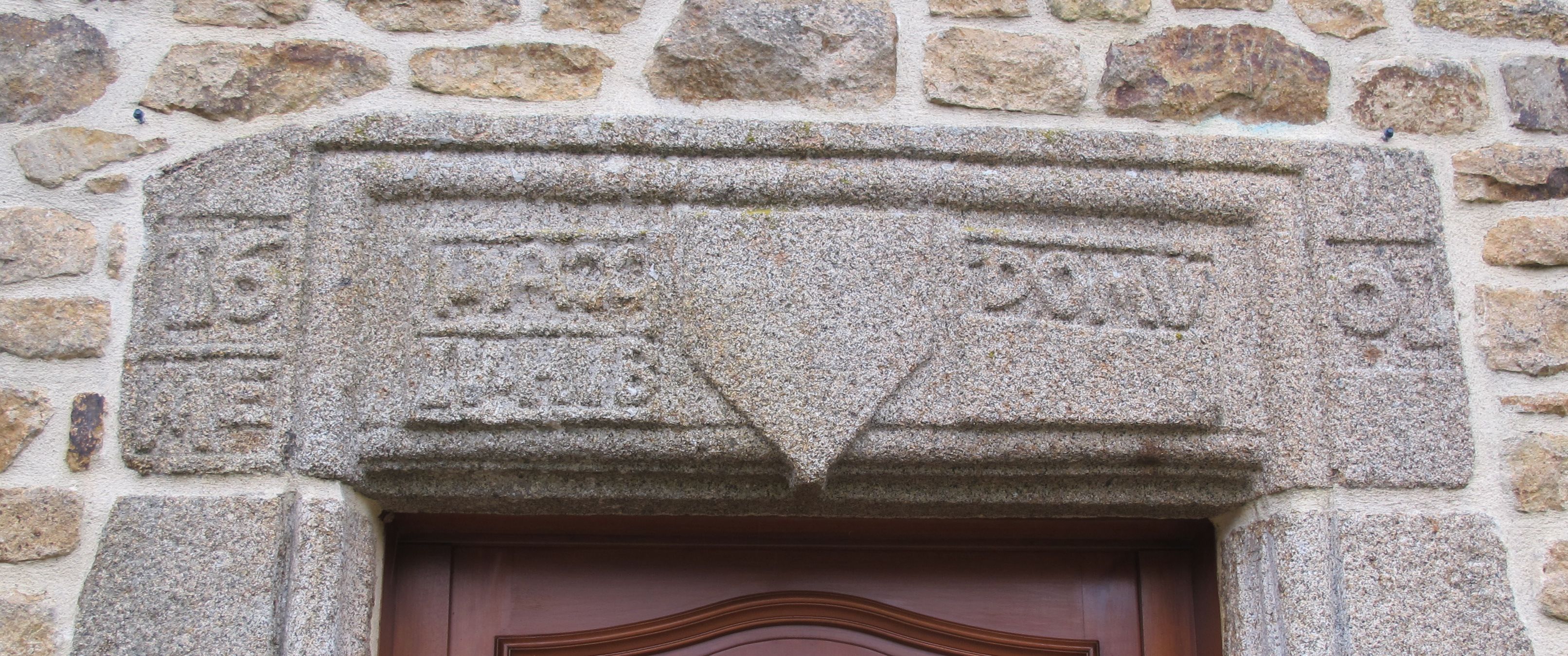 Linteau d'ouverture portant une inscription datée 1601 (élément remployé sur une maison moderne située rue du Stade)Immatriculation
