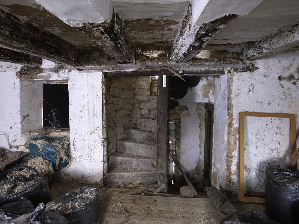 Etage, mur nord, départ de l'escalierImmatriculation