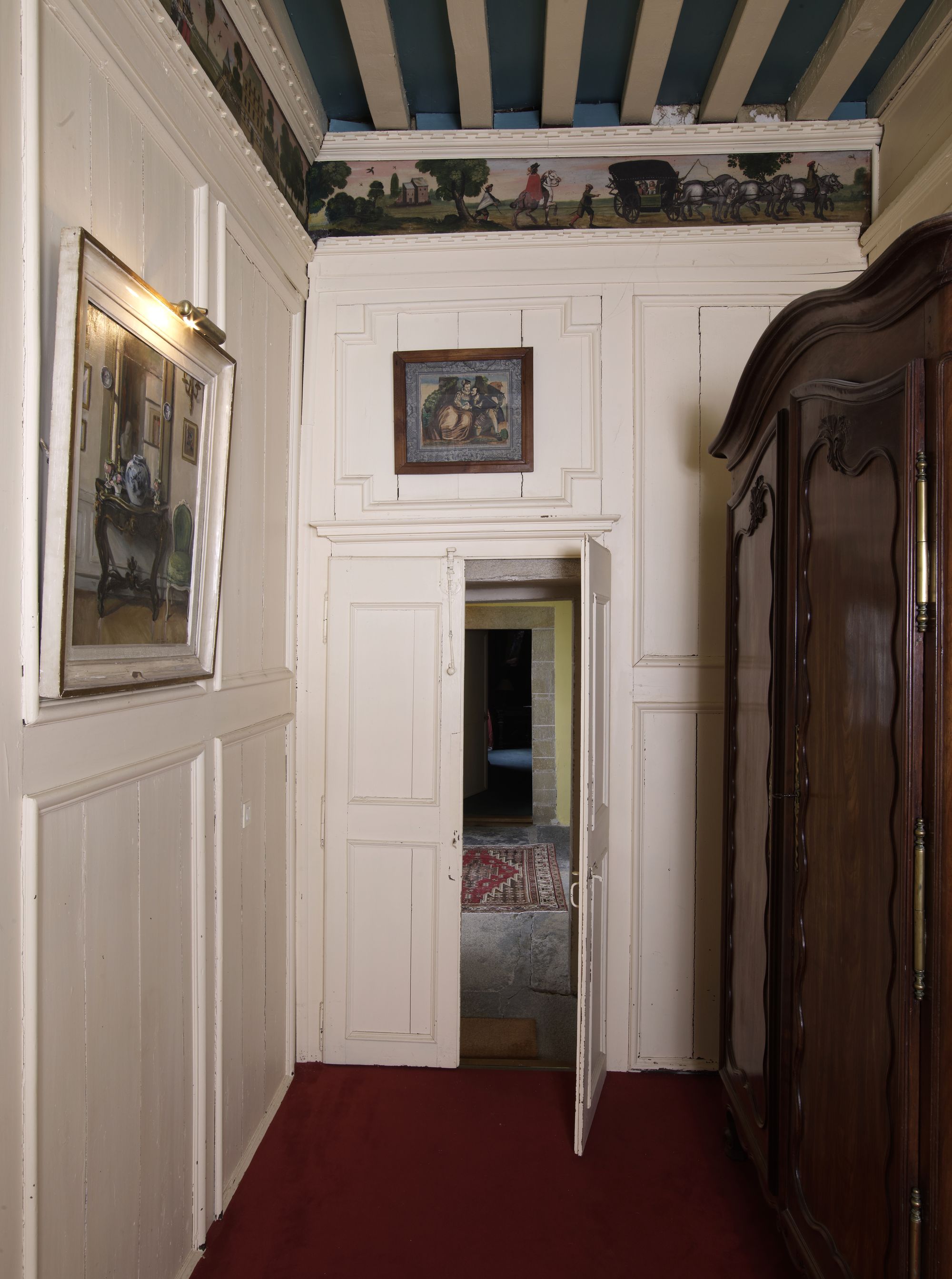 Vue du couloir nord de l'étage et décor peintImmatriculation