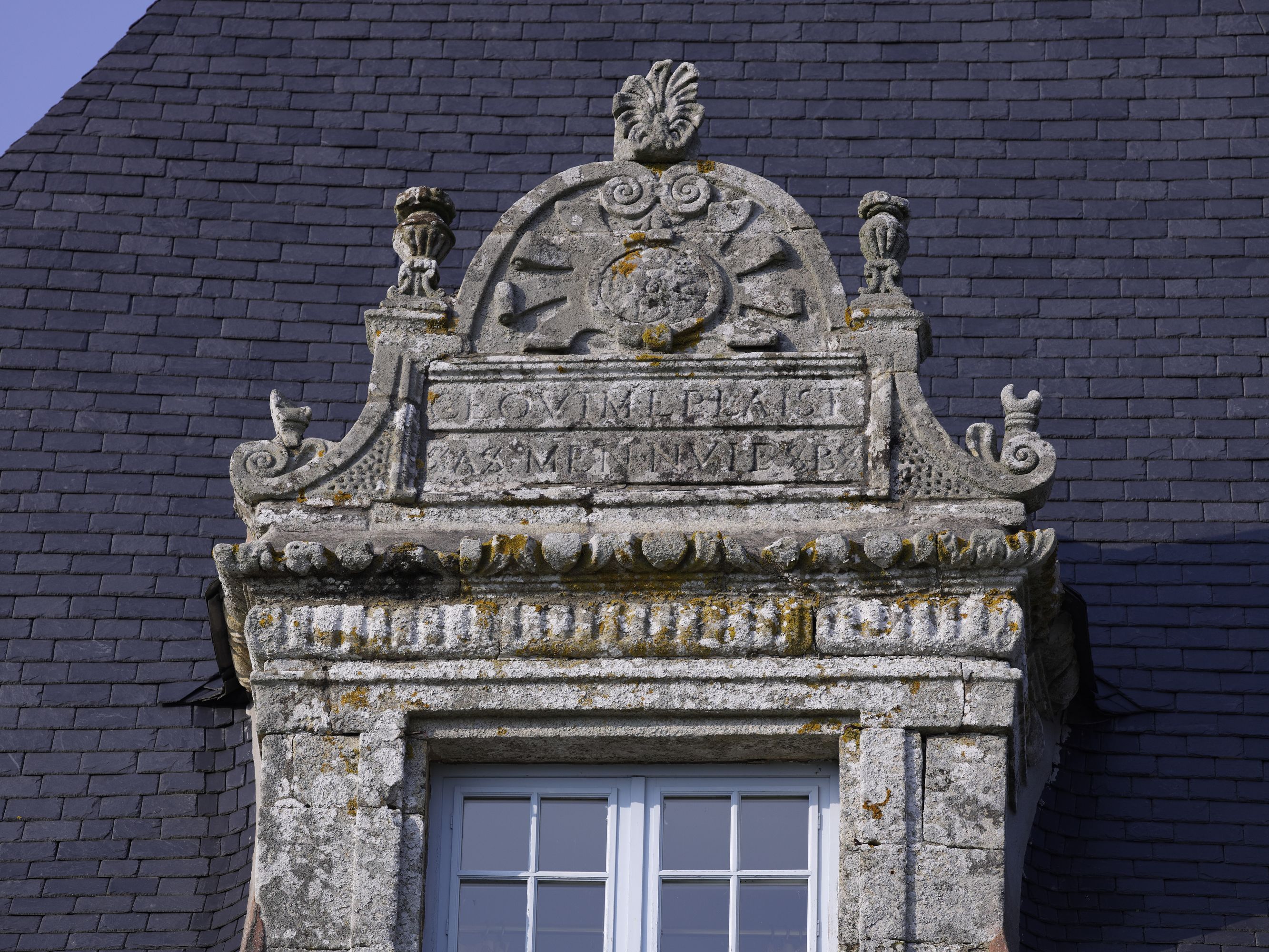 Elévation sud, lucarne, devise des commanditairesImmatriculation